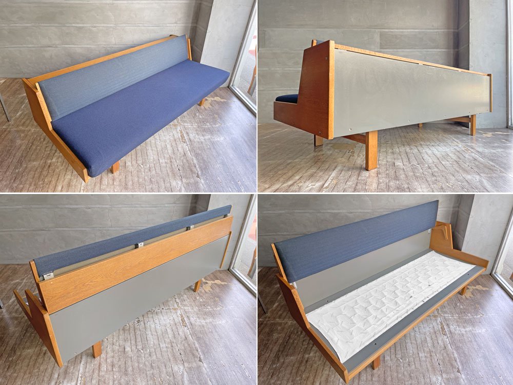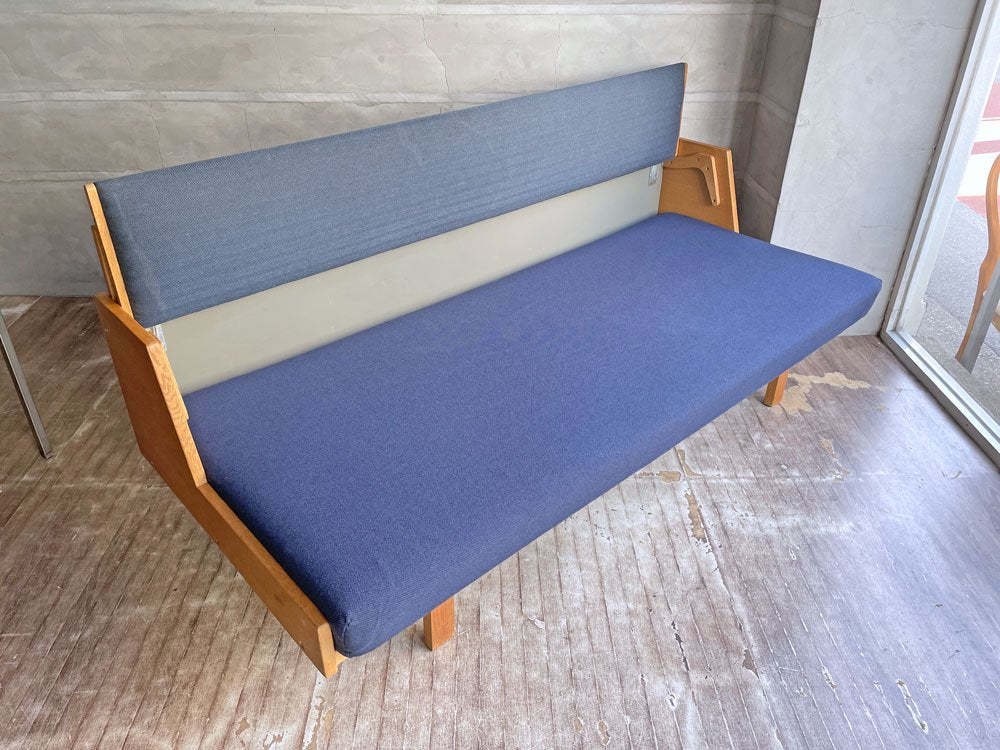 ゲタマ GETAMA ビンテージ GE258 デイベッド オーク ブルー系ファブリック 角脚モデル ハンス・J・ウェグナー デンマーク 北欧家具 希少 ~一人二役の名作~