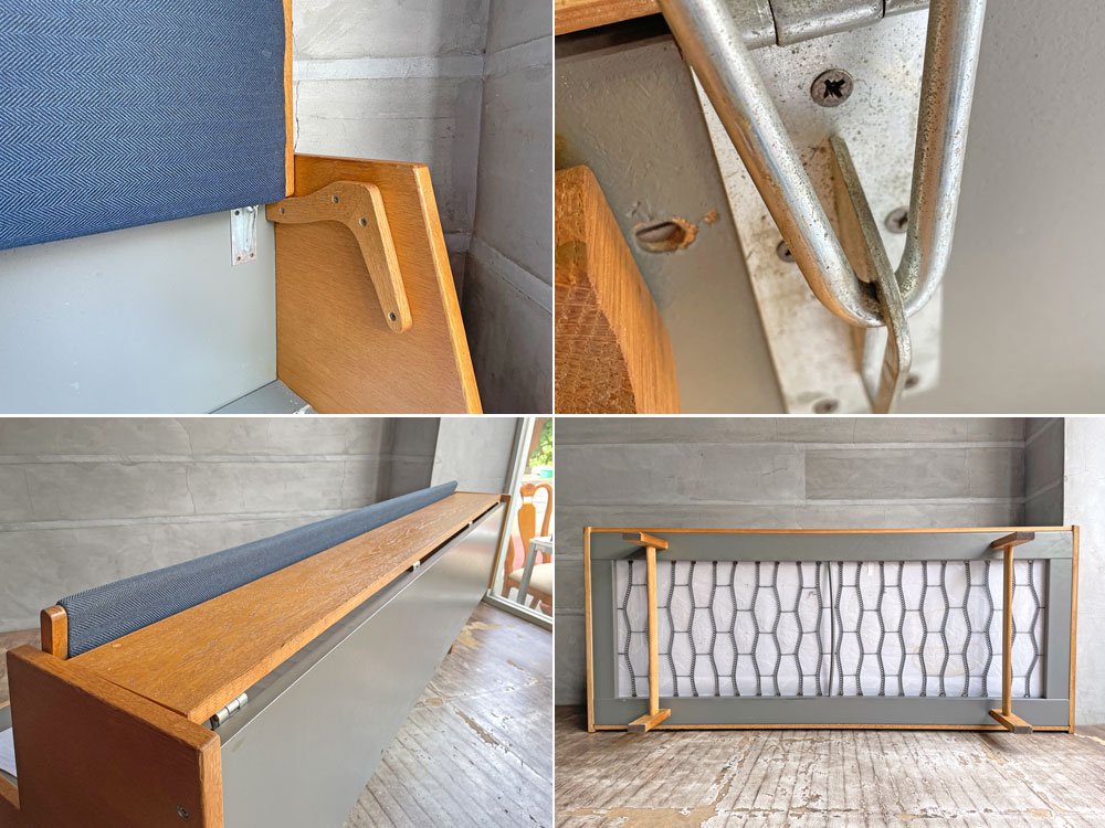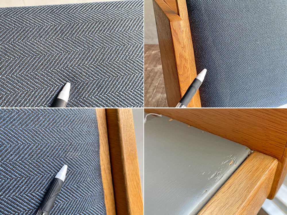 座面のファブリックは当店入荷後に専門業者様にて張替えを行い(Ribaco NC生地)、ウレタンクッションは交換済みとなっております。古いお品物ながら、実用には問題の無いコンディションを保っております。