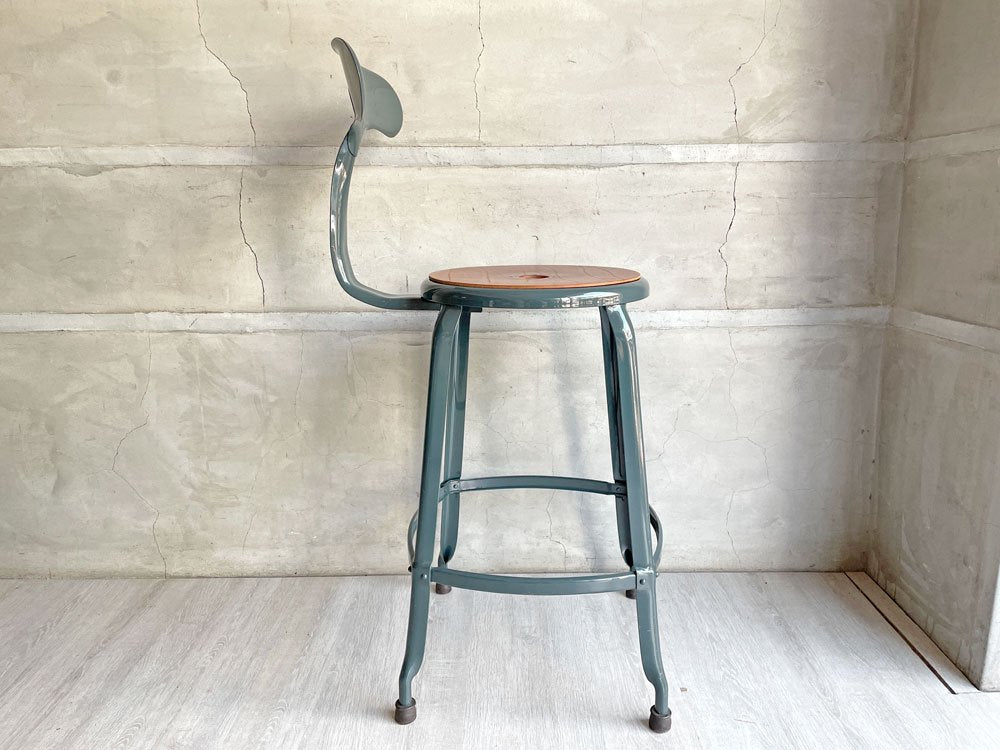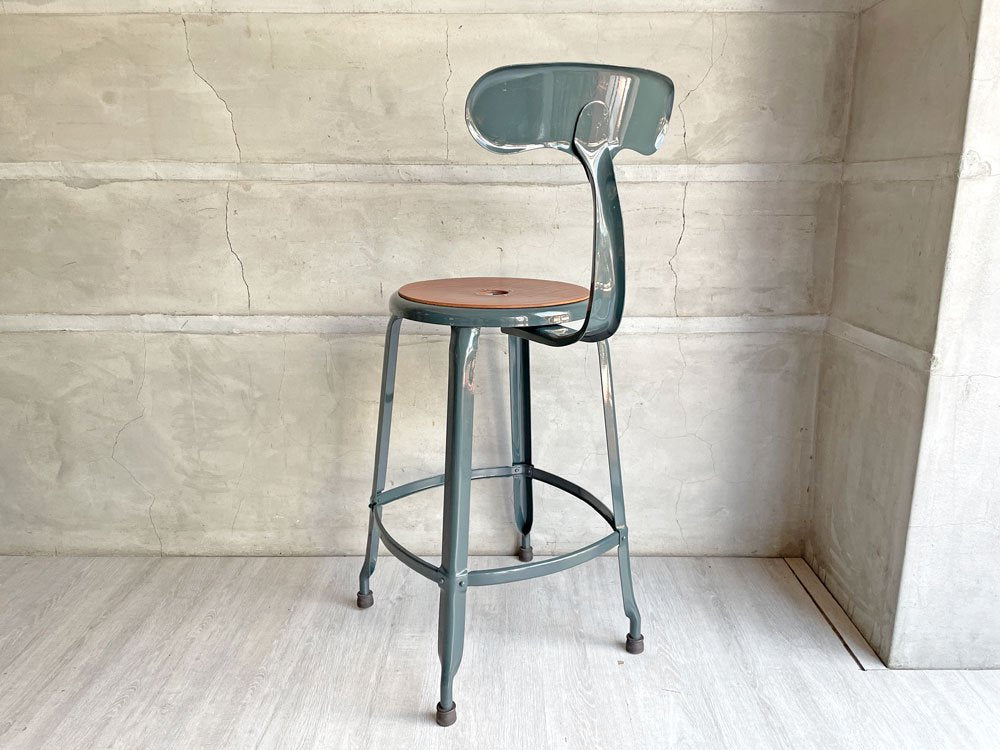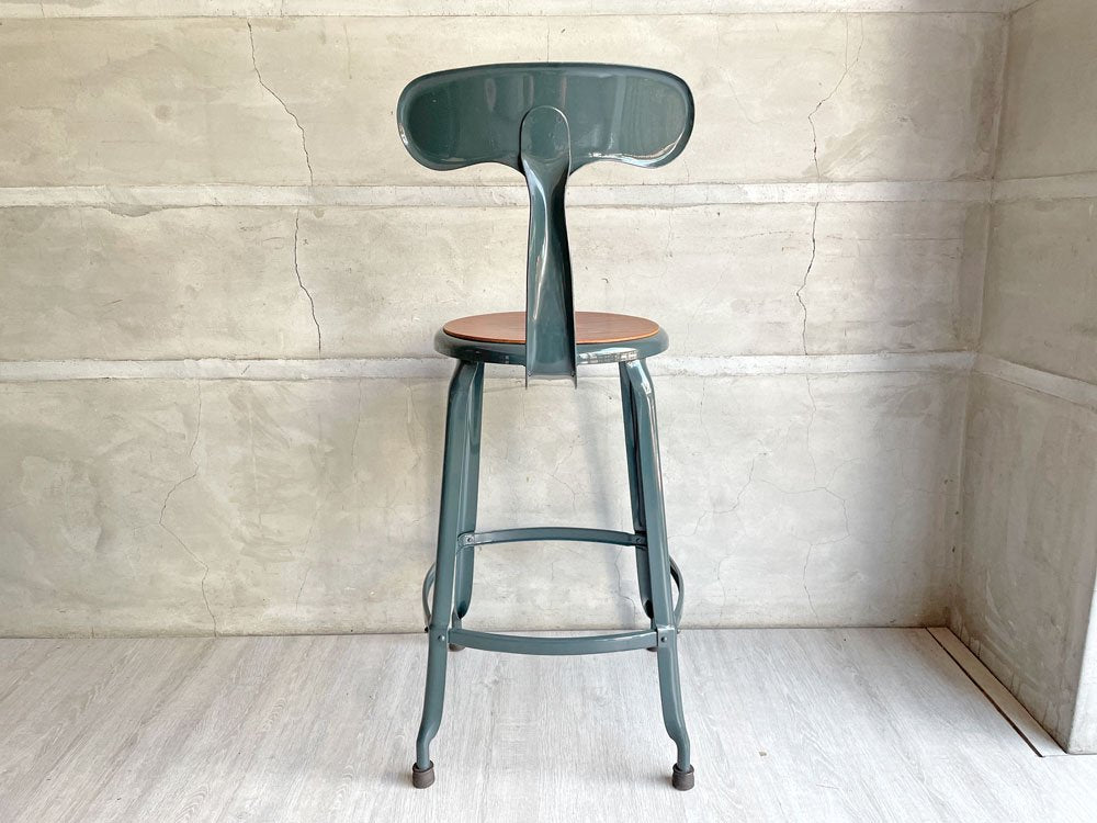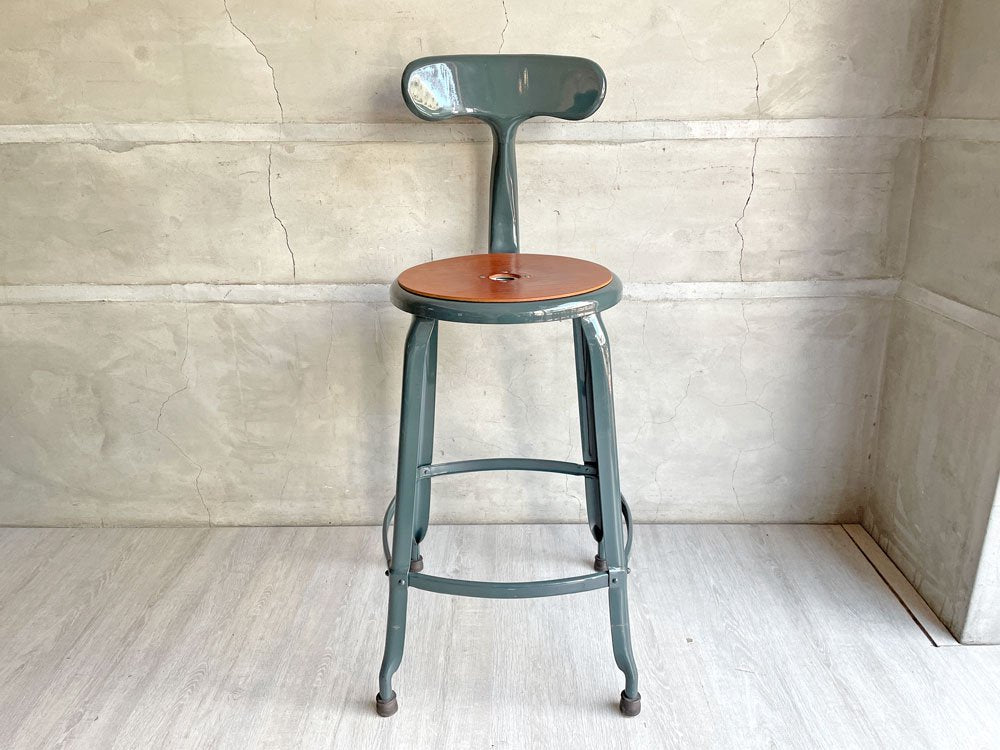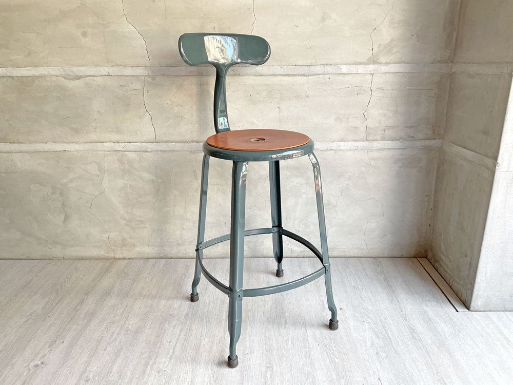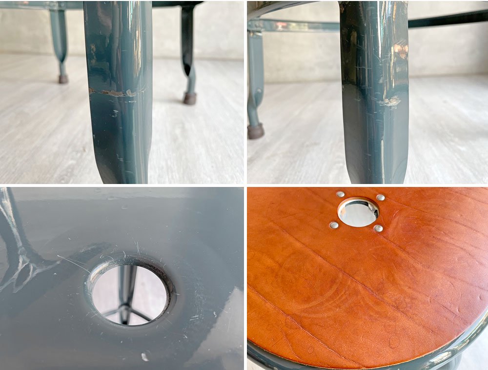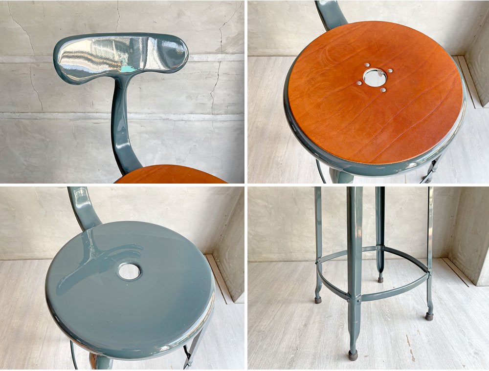 ニコルチェア NICOLLE CHAIR H65 ハイスツール レザーシート付き オリーブグリーン系 インダストリアル フランス THE CONRAN SHOP取扱い ♪