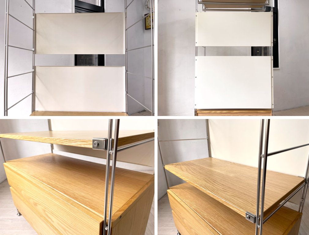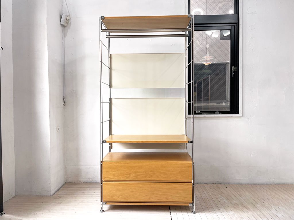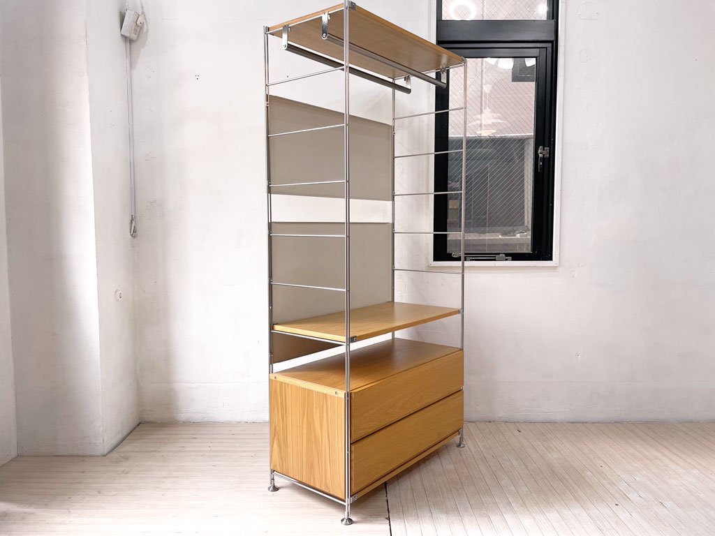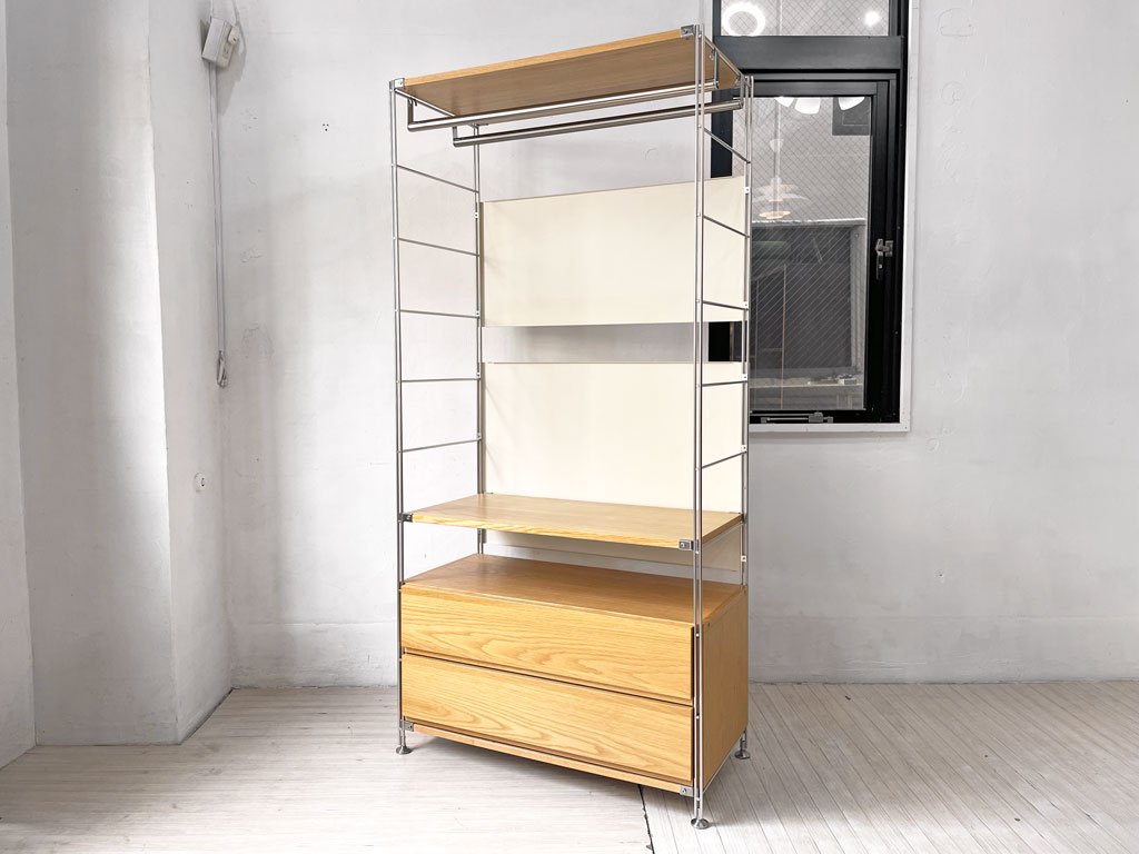 無印良品 MUJI ステンレスユニットシェルフ ハンガーラック オーク材 ワードローブバー2本&バックパネル&引き出し付き 収納家具 ★