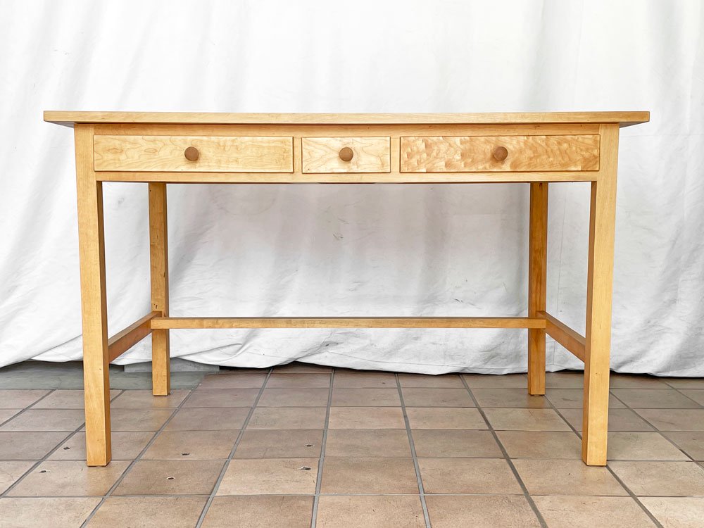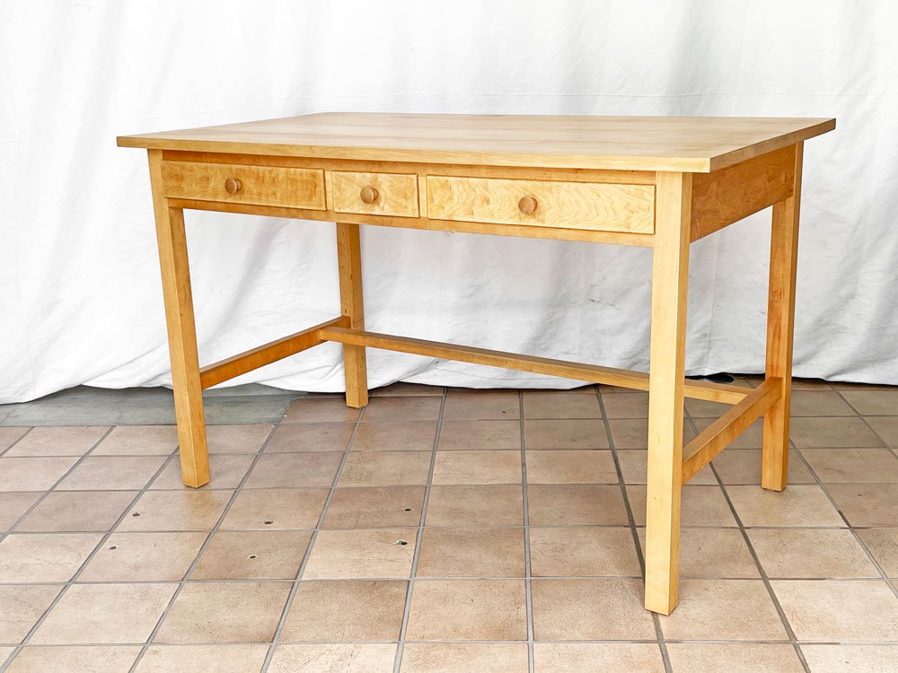 こちらは透明感溢れる杢目が特徴の"メープル(カエデ)"無垢材を使用した3ドロワーデスク。