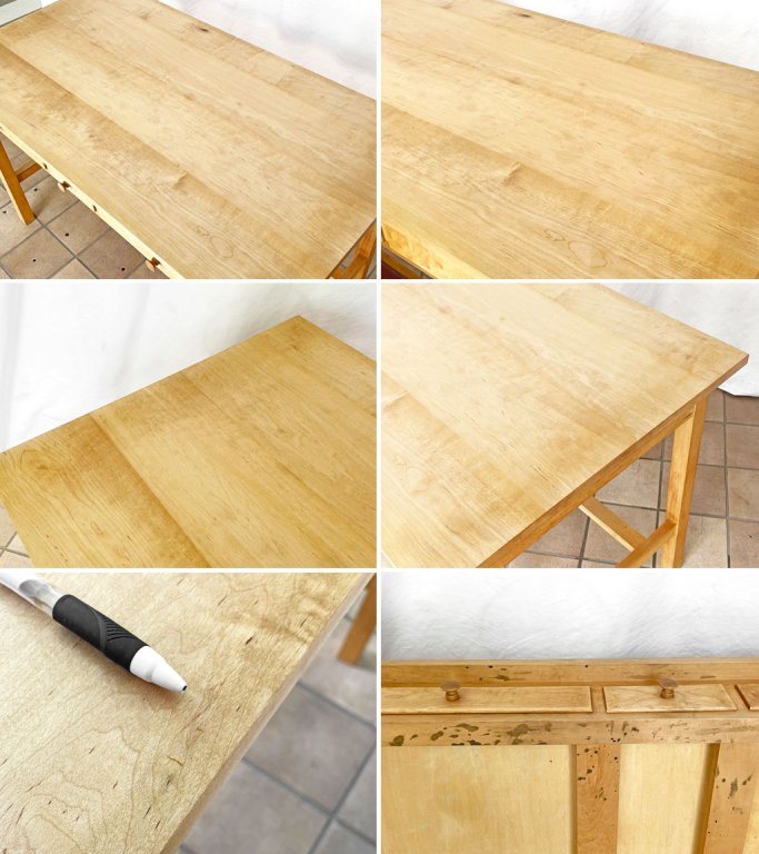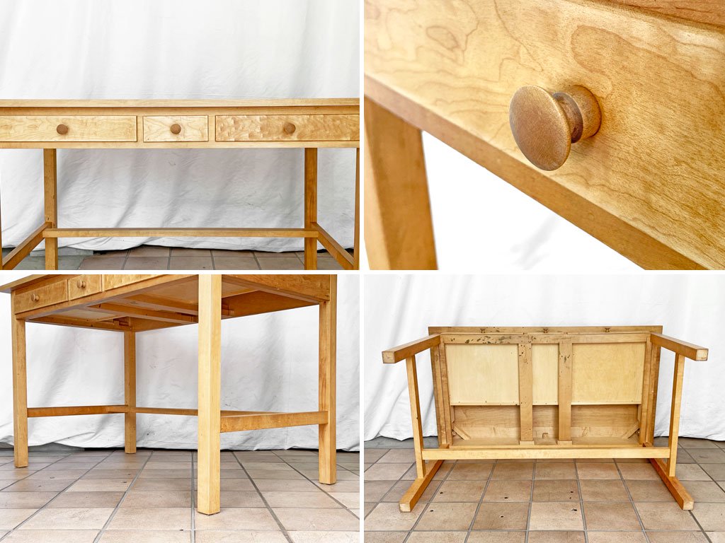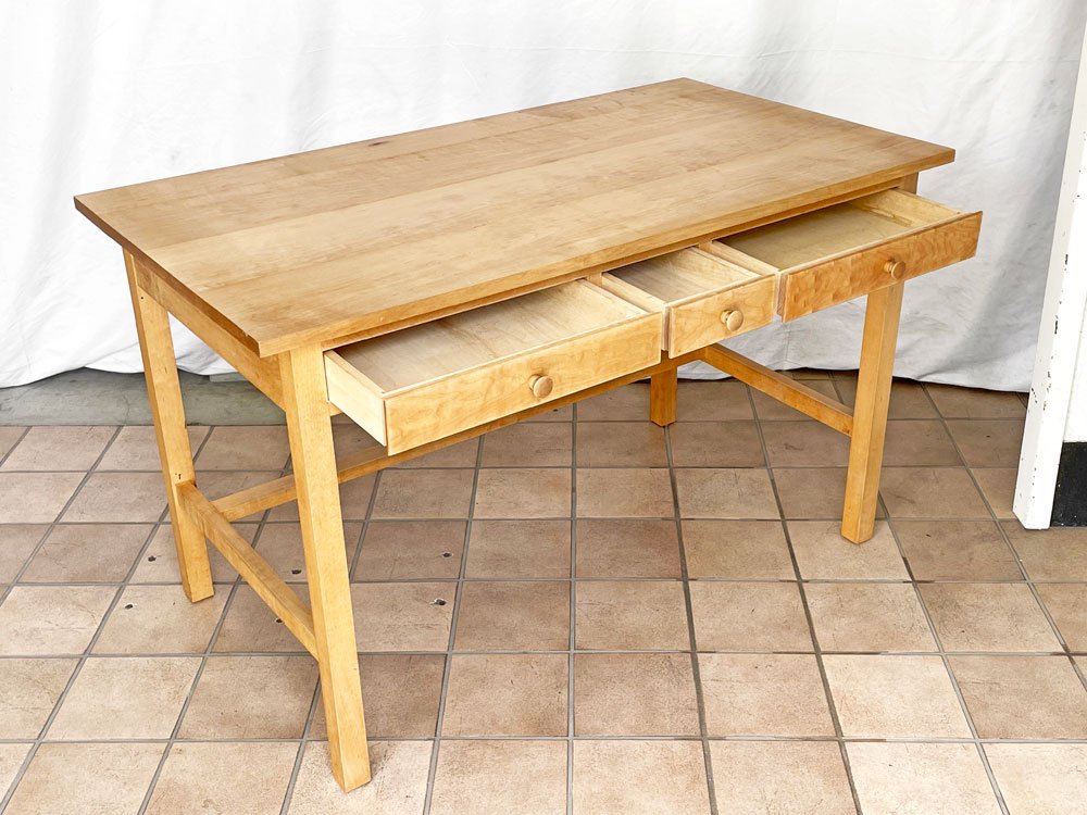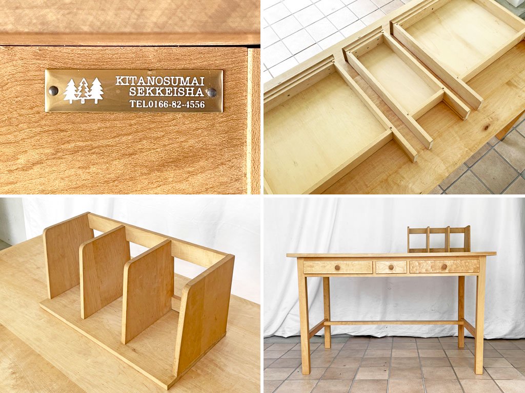 北の住まい設計社 デスク 机 メープル無垢材 引き出し3杯 ブックスタンド付き ナチュラルスタイル W120cm 廃番 ◇