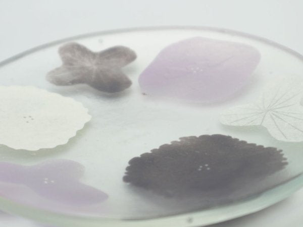 人気ガラス作家『八木麻子』さんのwreath ガラスプレート パープルです。