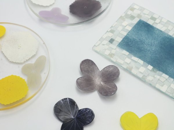 キルンワークという技法で生み出される表現豊かな造形がとても魅力的で、テーブルウェアやアクセサリ、花器など様々な作品を手掛ける人気作家さんの一人ですね。