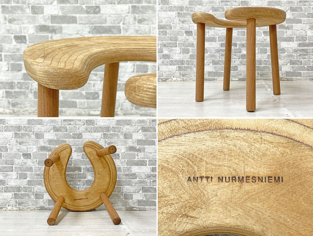 座面裏には“ANTTI NURMESNIEM”の焼き印。こちらは、座面の丸ほぞが無いことから後年復刻されたタイプの1脚と思われます。(前所有者様の購入時期を鑑みると、復刻されたタイミングとしては初期の頃と思われます)