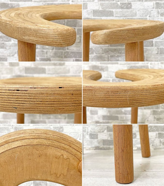 使用に伴う細かな擦れ傷の他、脚部の先のわずかな染み、製造時による積層合版の小さな欠けなどございますがいずれも目立つものではございません。
