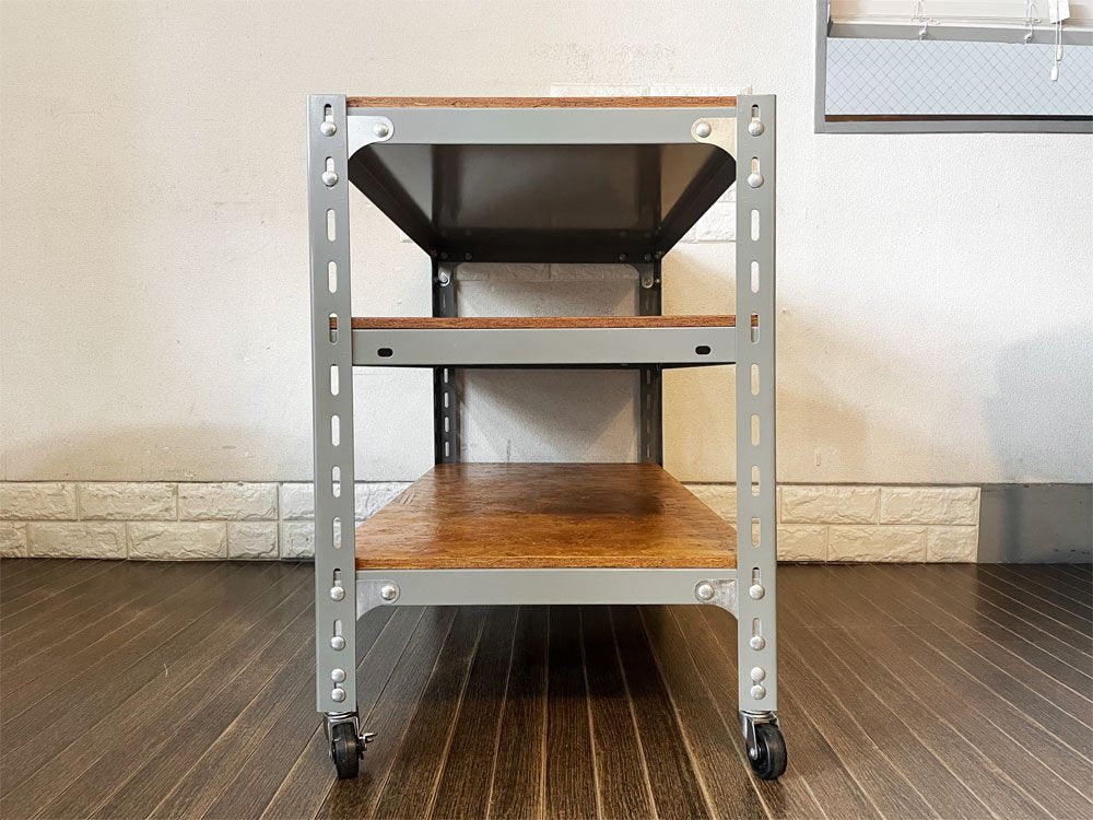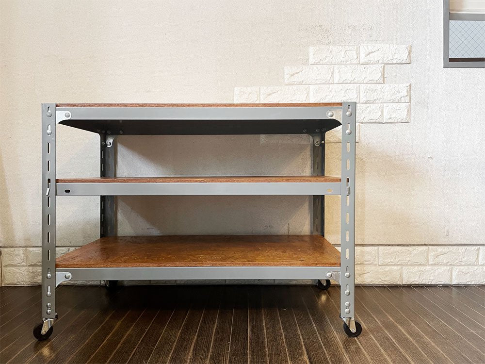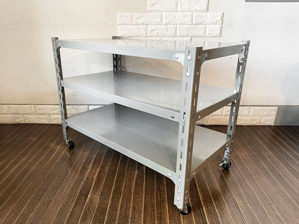 ディーアンドデパートメント D&DEPARTMENT 工業用スチールシェルフ オープンシェルフ 3段 グレー W88cm キャスター&カスタム棚板付 インダストリアル ◎