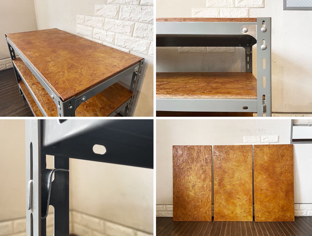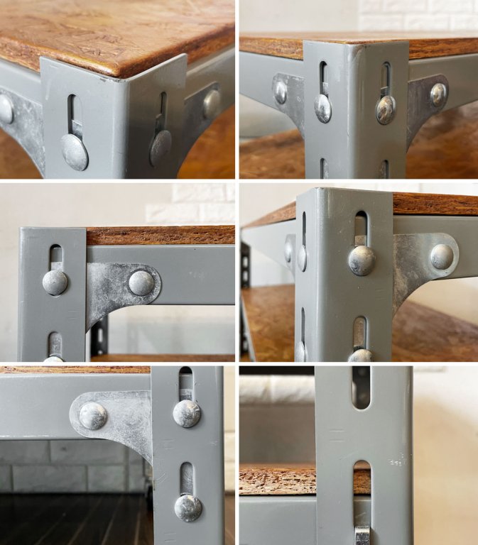 実際に什器として用いる店舗も多く、まさにリアル・インダストリアルな1台。ボルトを使わずに棚間を調整できるので、頻繁にレイアウトを変更する場所でも重宝します。