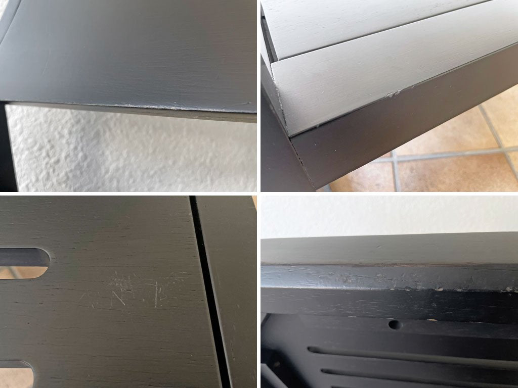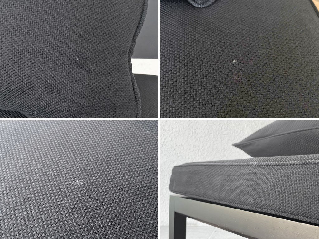 使用に伴い、フレームには傷や擦れ、打痕やスクラッチ傷、ペイントロスやタッチアップ痕等のダメージが見受けられます。また、クッションには僅かにファブリックの毛羽立ちや色ムラ、落としきれない汚れが見受けられますが、クッションのヘタリ等は無く、着座に問題はございません。その他、使用に問題となるようなダメージは無く、これからも永くご使用頂けるコンディションを保っております。