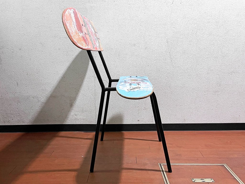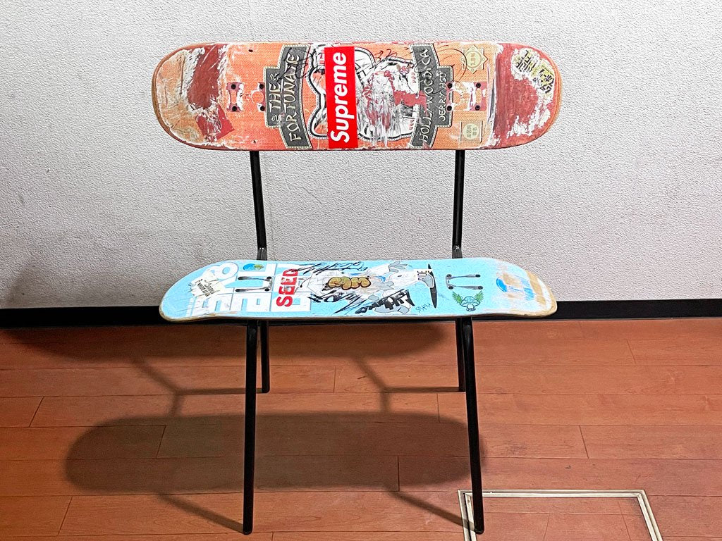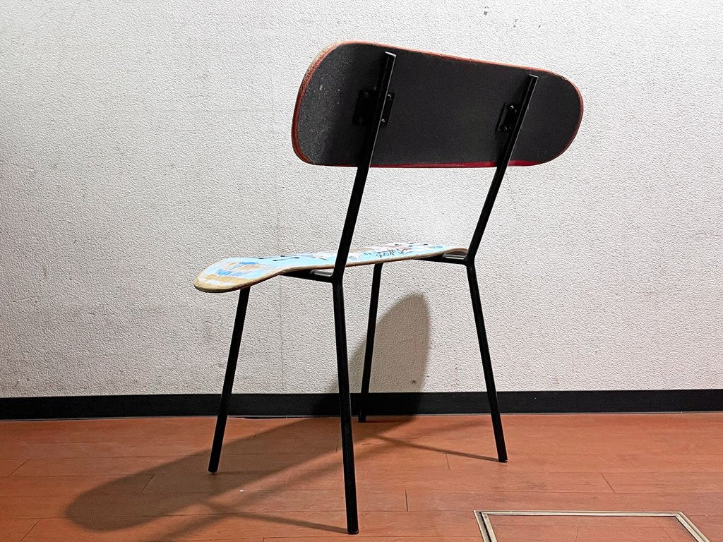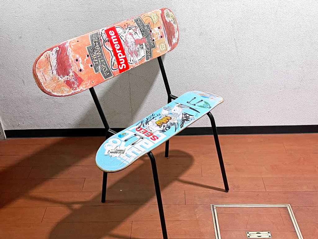 スケートボードのデッキをそのままシートに使用した斬新なデザイン、使い込まれたデッキがストリート魂を感じせる一点となっております。