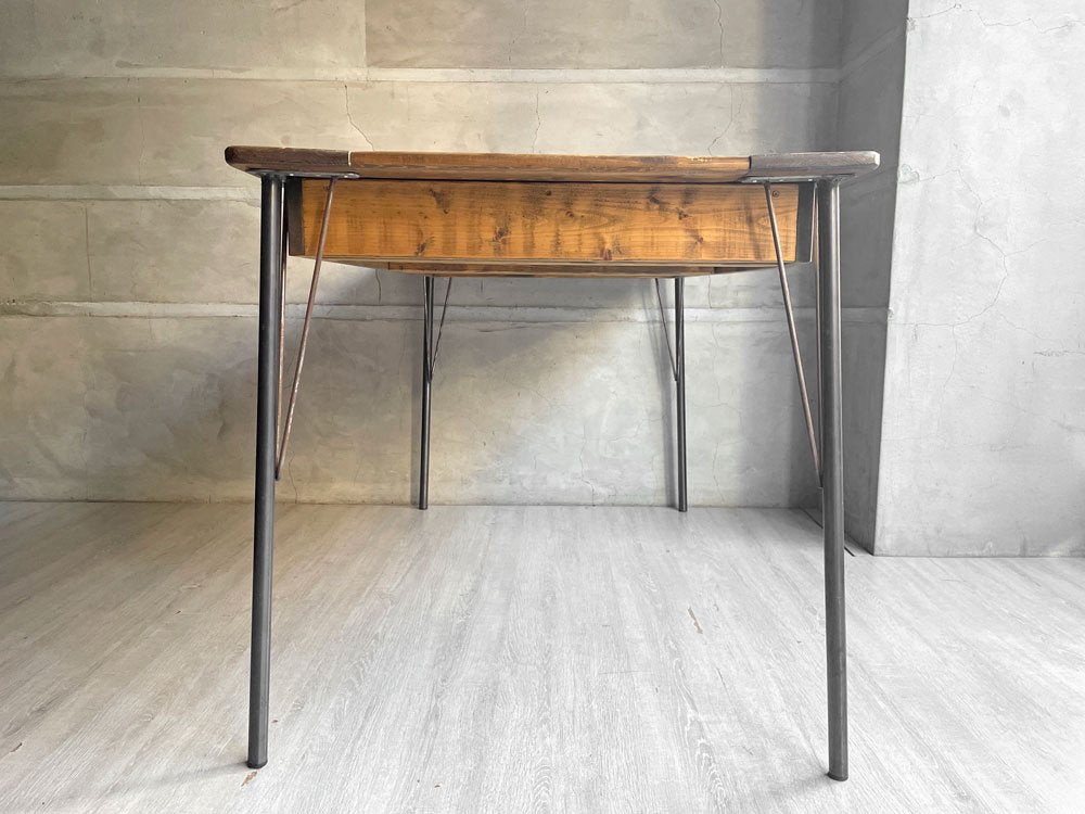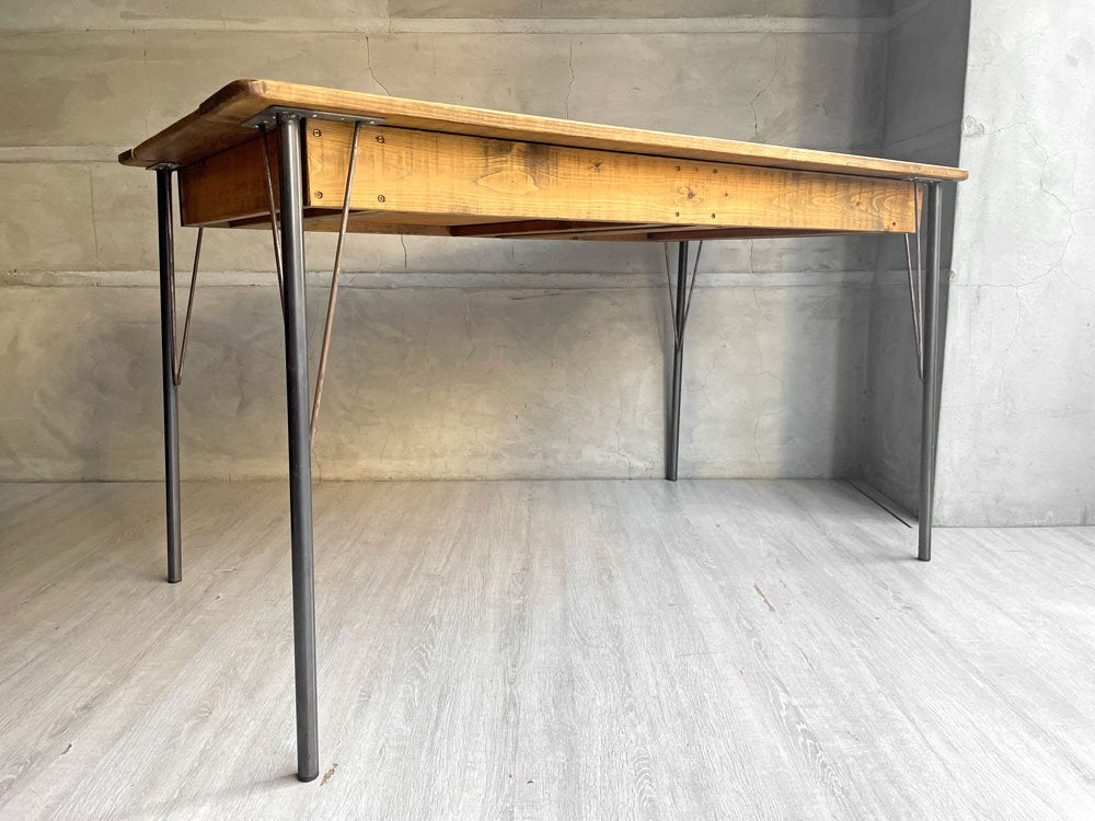 パイン材天板に鉄脚を組み合わせた、ビンテージスタイルのダイニングテーブルです。