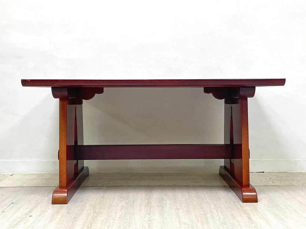 ジャパニーズモダンデザイン リビングダイニングテーブル オーク無垢材 W141.5cm 民芸調 和モダン ●