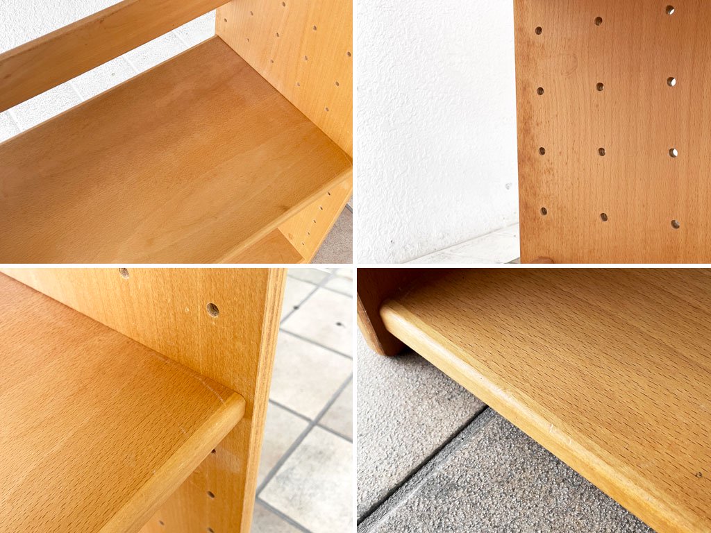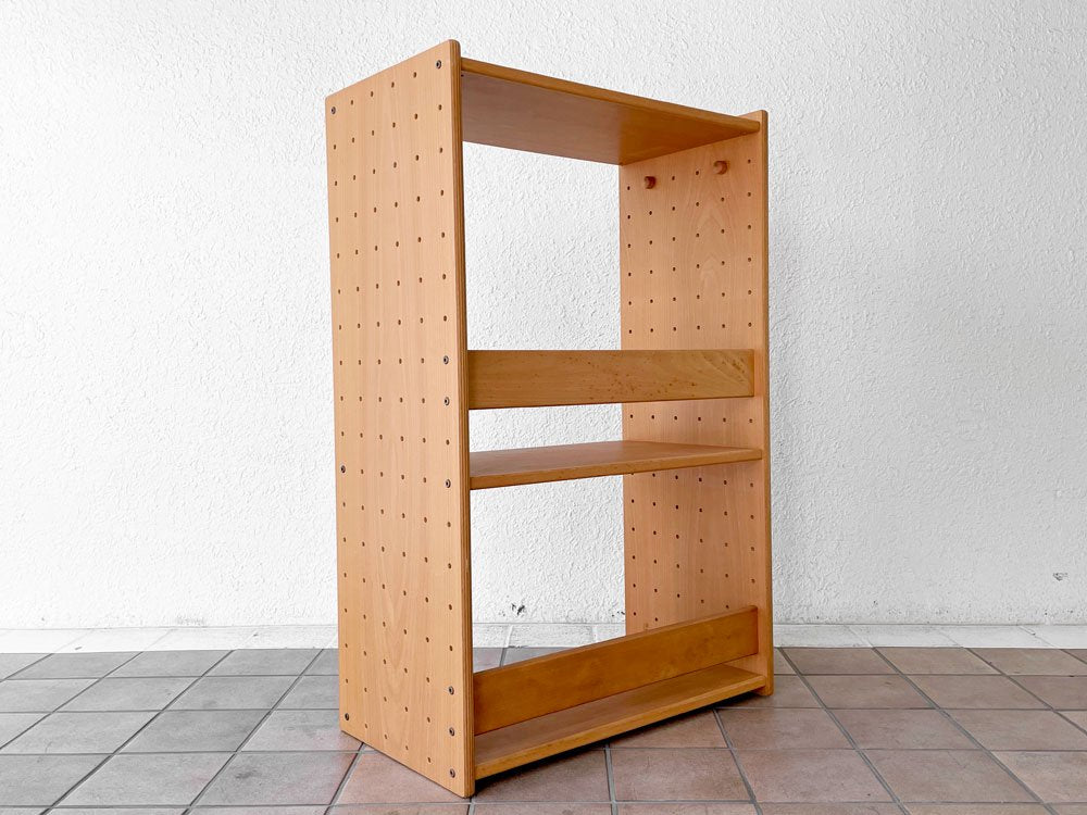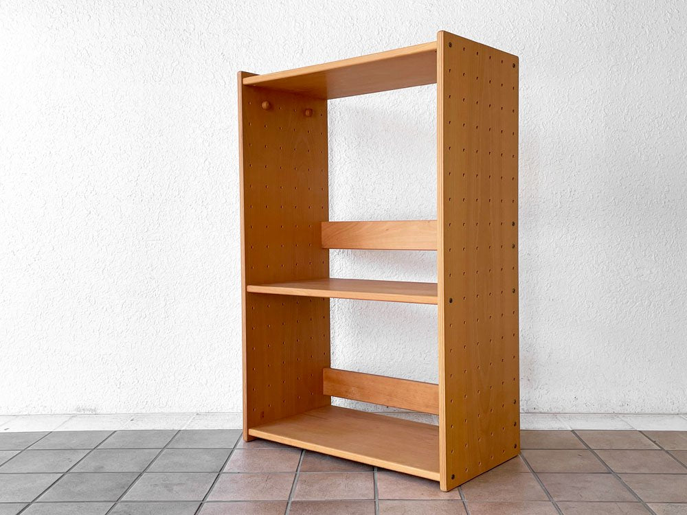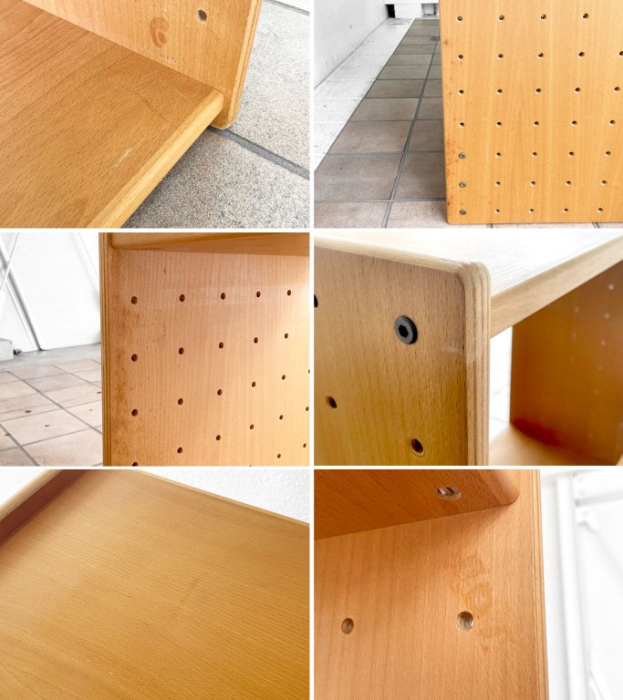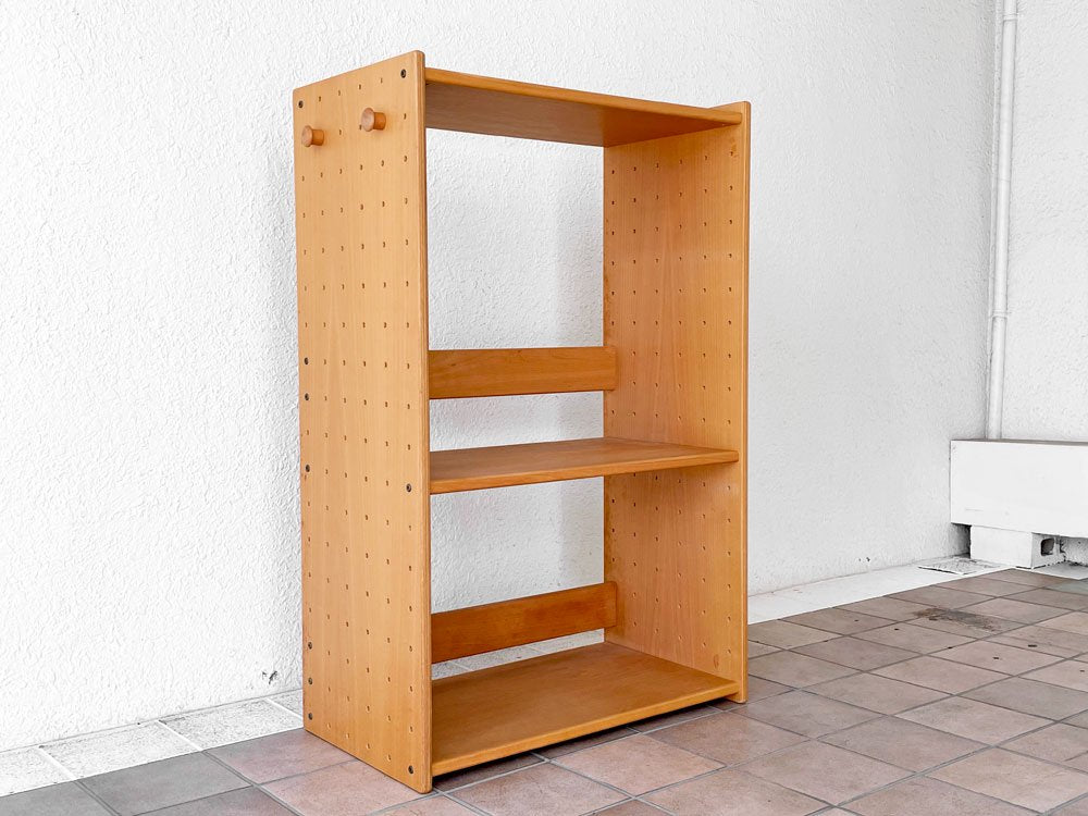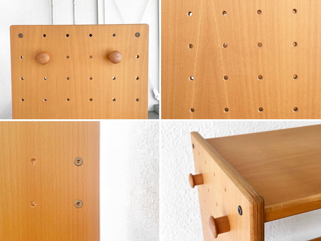 こちらのトールシェルフは、拘りのブナ材を使用した素材の良さ、多数の孔を備えた利便性の高さを活かした一点となっており、アイディア次第で自由にカスタマイズできる仕様から、暮らしの変化に合わせて永くお使い頂く事ができる逸品となっております。