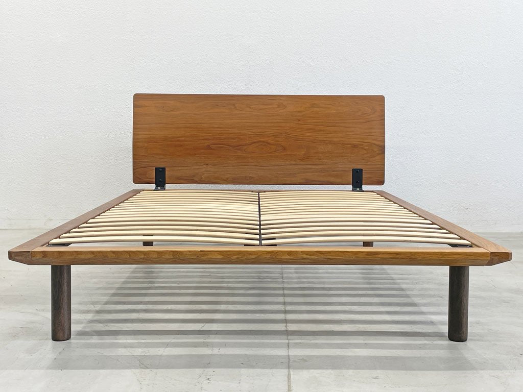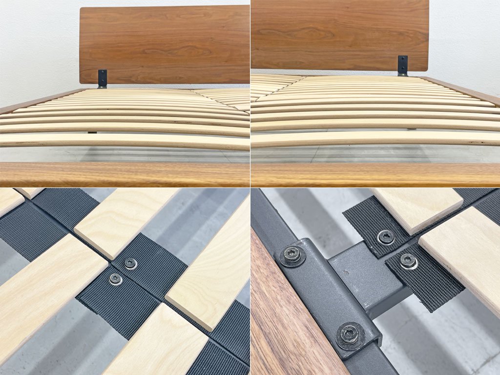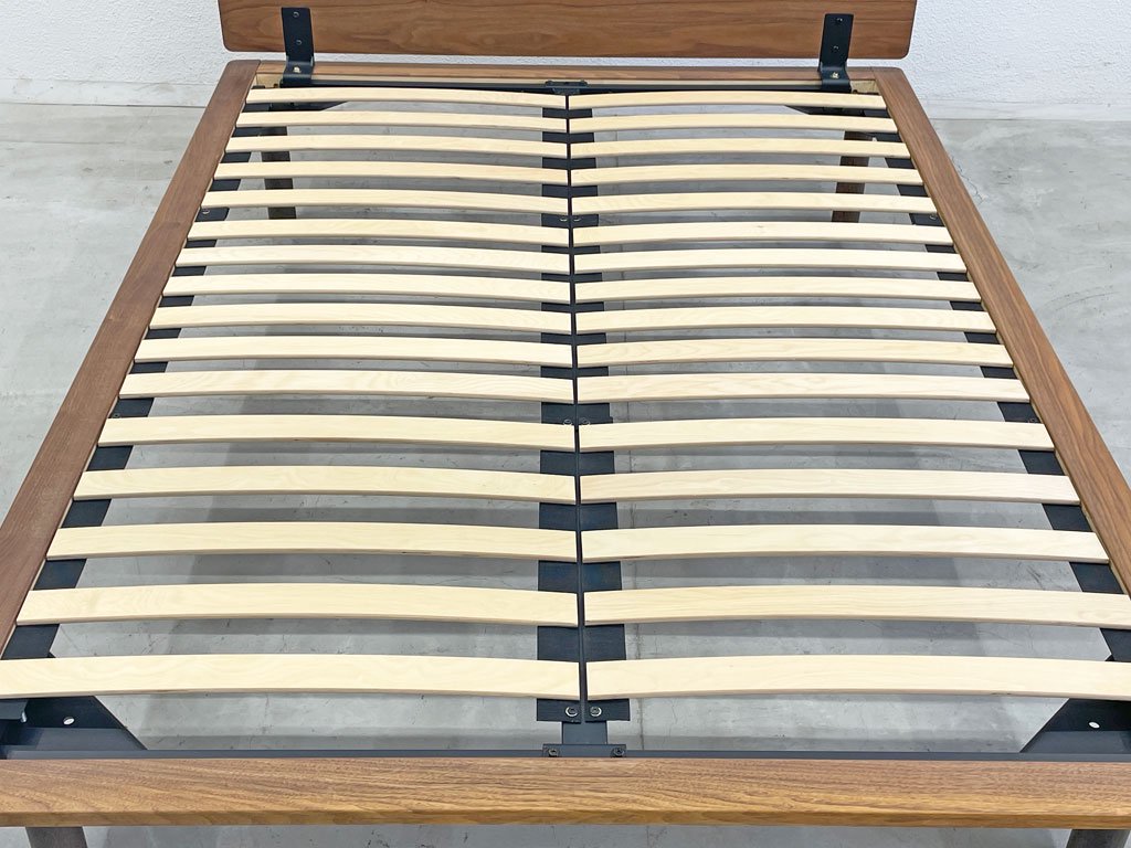 無印良品 MUJI ウォールナット材 ダブルサイズ ベッドフレーム ウッドスプリング ヘッドボード付 定価57,900円 〓