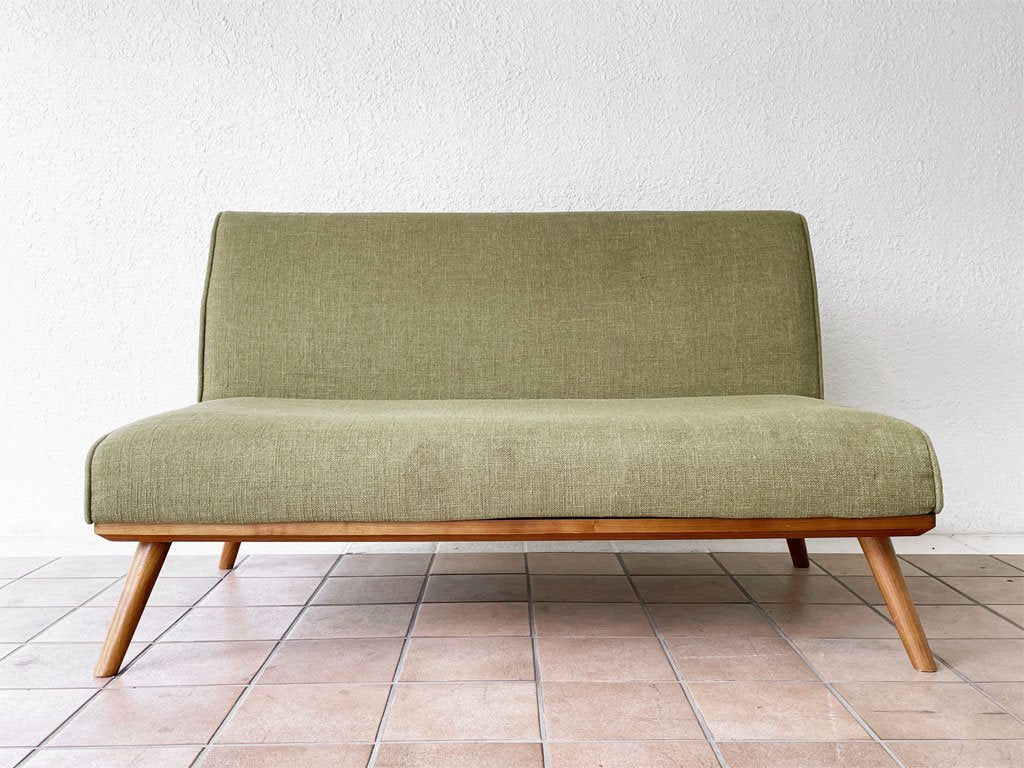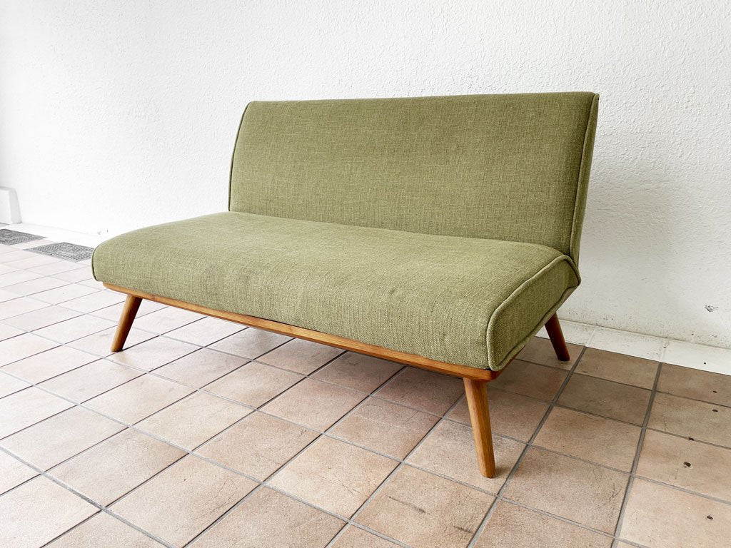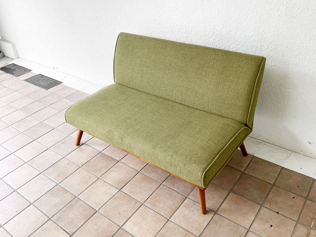 ウニコ unico ロイ ROY 2人掛けソファ モスグリーン ファブリック ウォールナット脚 北欧ビンテージスタイル 廃番品 ◇