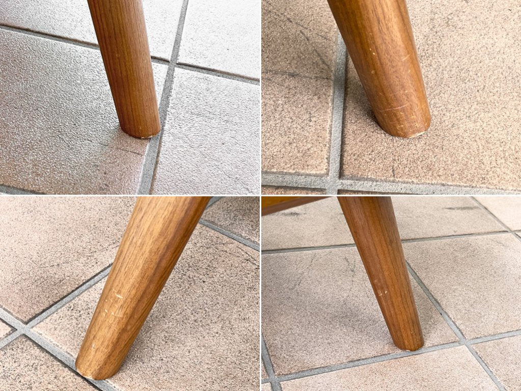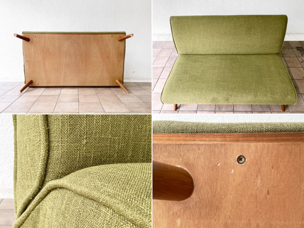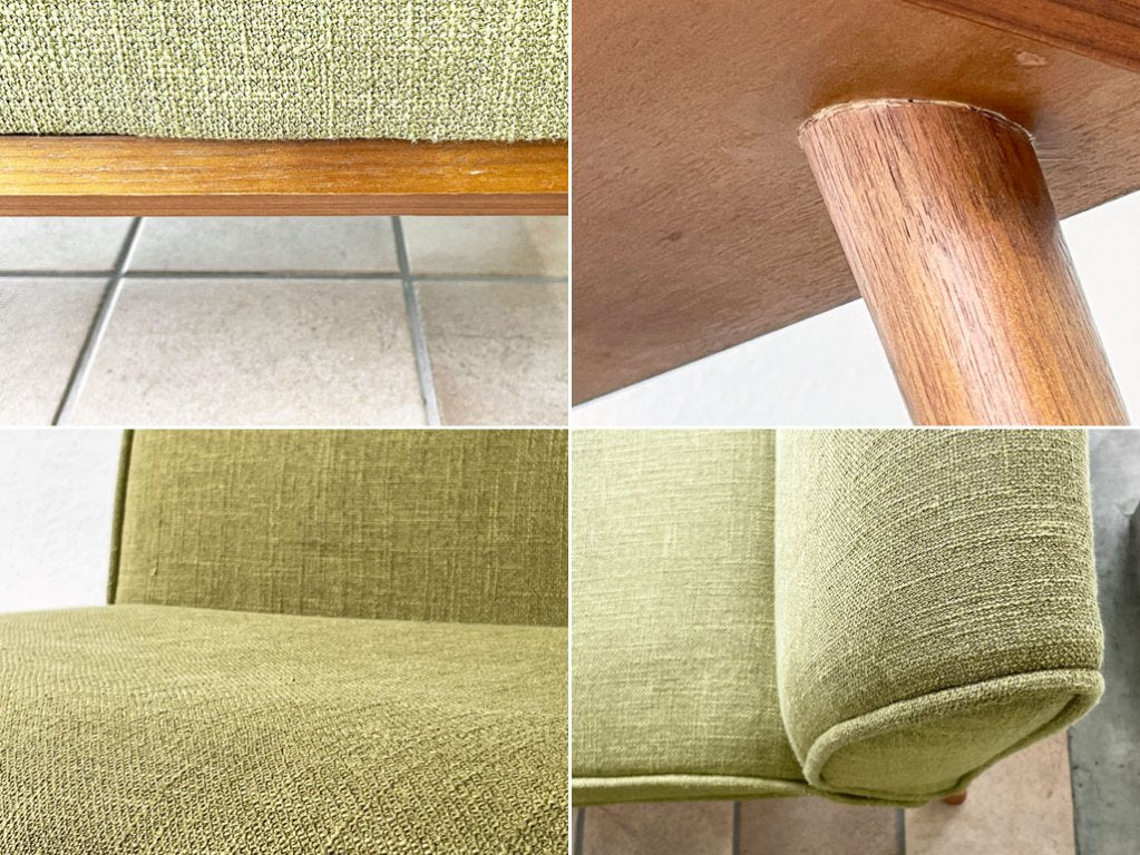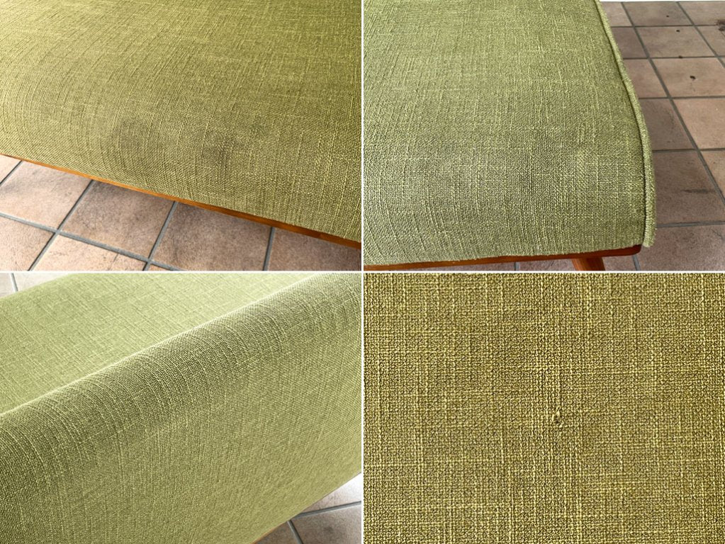使用に伴い、ファブリックには擦れや染み、汚れ、取り切れない毛玉、また脚部には傷や僅かな打痕が見受けられます。また、シートに縫い目のほつれがいくつか見受けられますが、美観を大きく損ねるものでは御座いません。その他、通常の使用に問題となるぐらつきやクッションのへたり等は見られず、これからも気持ちよくお使い頂けるコンディションを保っております。