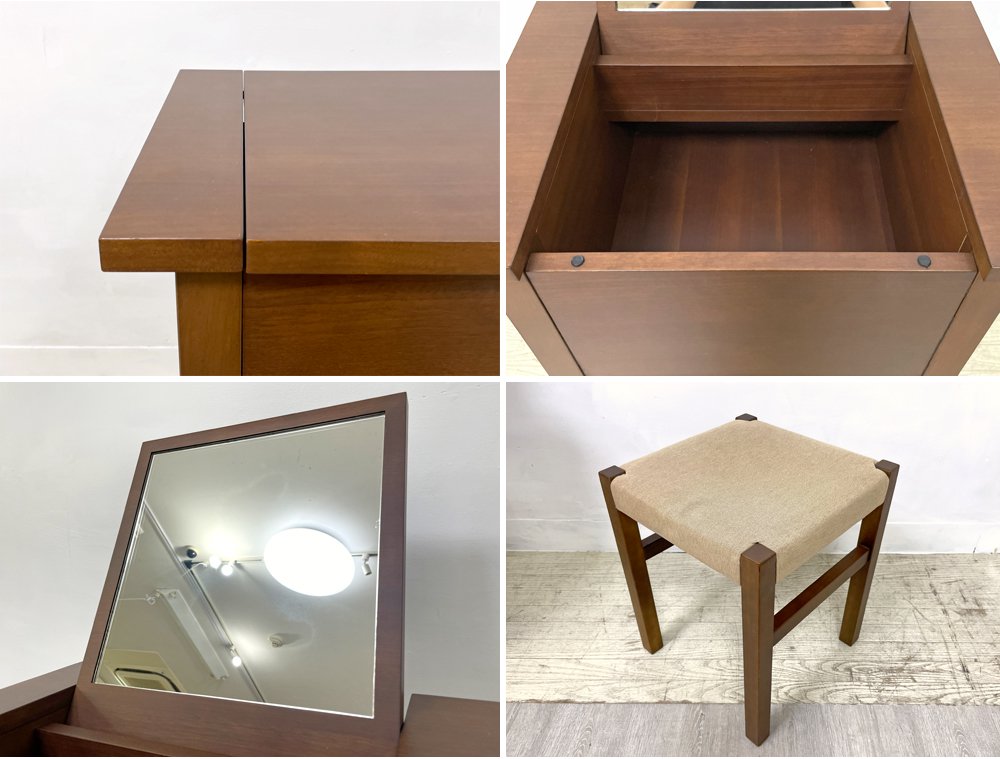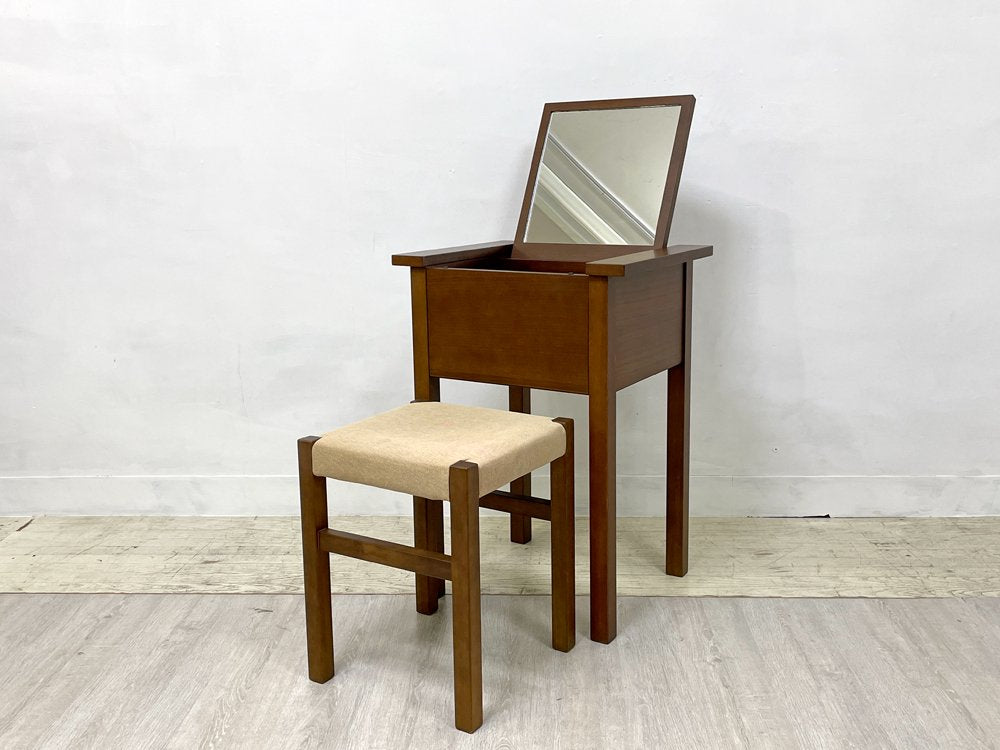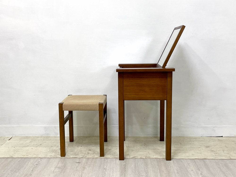 無印良品 MUJI バーチ材 コンパクト ドレッサー デスク スツール付 ブラウン 化粧台 廃番 ●