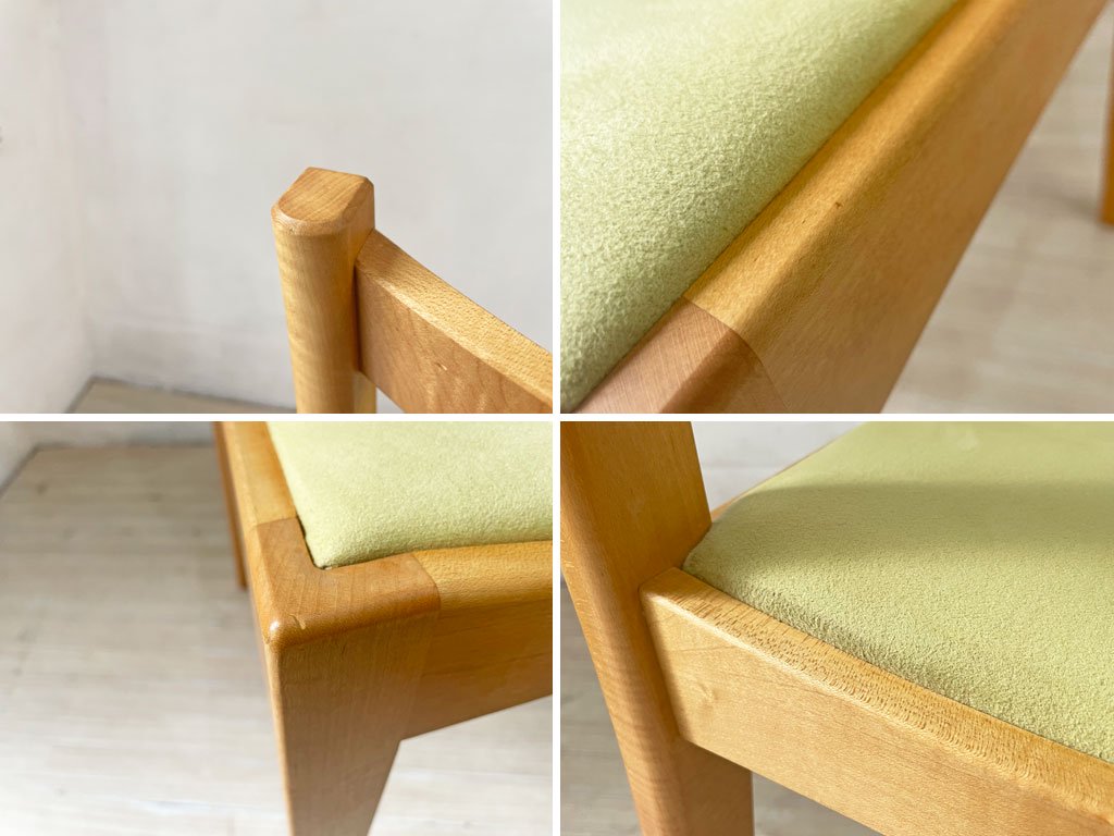 座面はスウェード生地のようなイエローグリーンで内部にはクッションも内包されており、固すぎず柔らかすぎない快適な座り心地となっております。