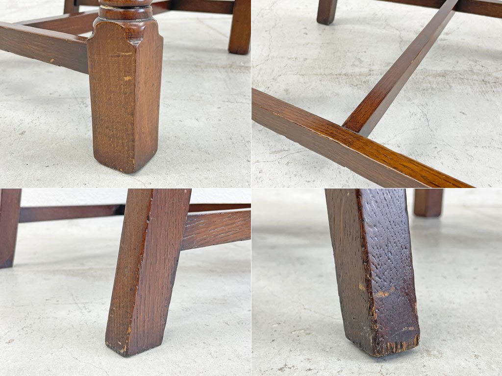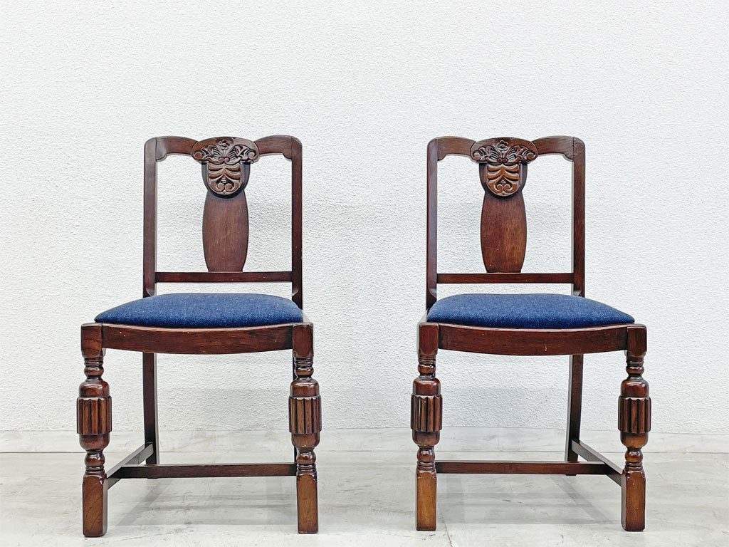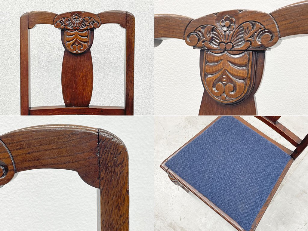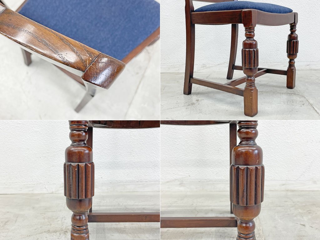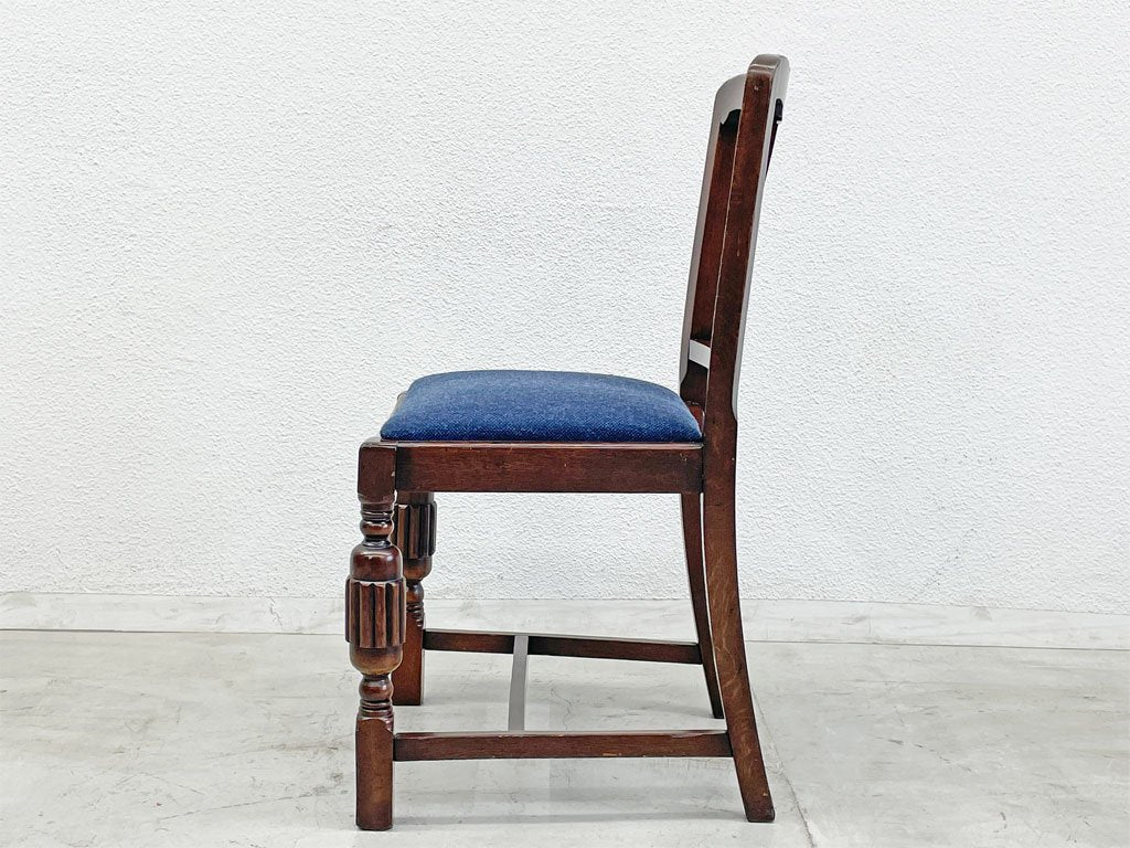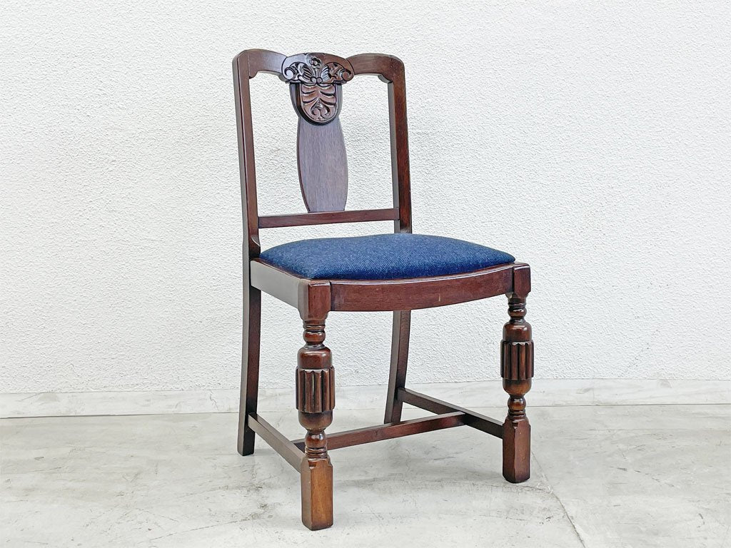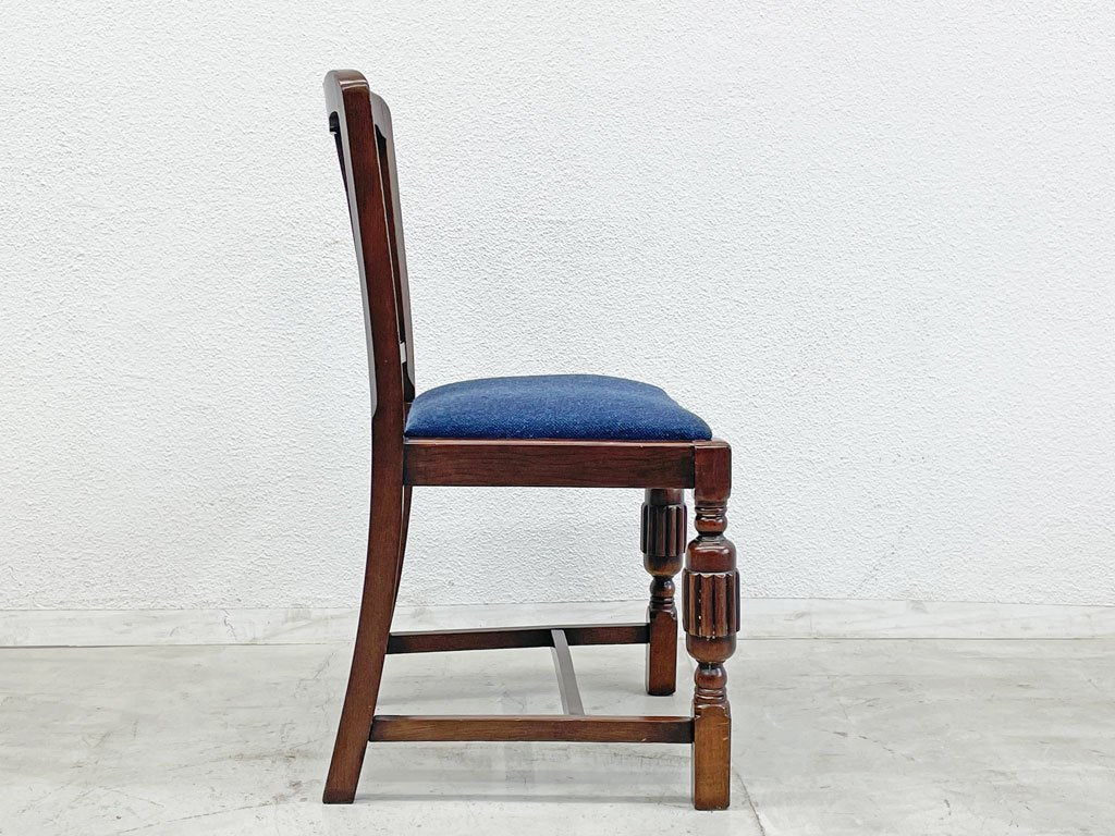 UKビンテージ Vintage ダイニングチェア オーク材 シート張替え ネイビー系 バルボスレッグ 彫刻装飾 B
