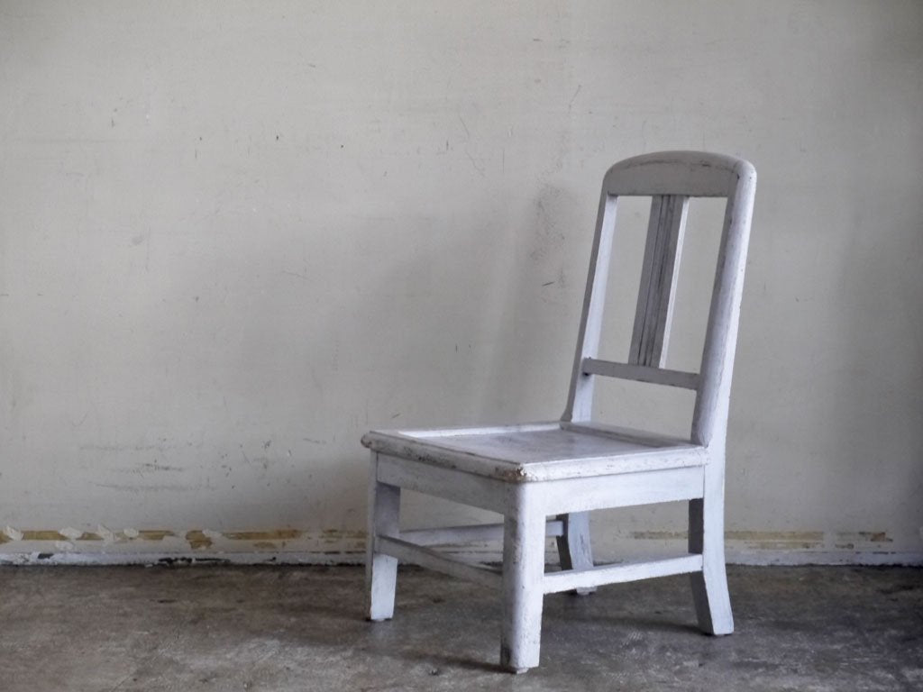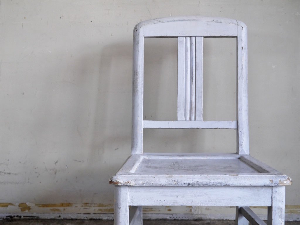 淡いブルーグレーにペイントされたシンプルなデザインの1脚。
