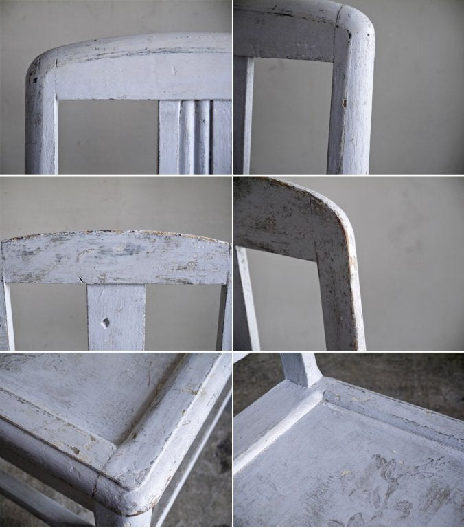 フランスビンテージ French Vintage ペイントテッド ローチェア ライトブルーグレー