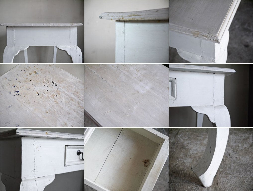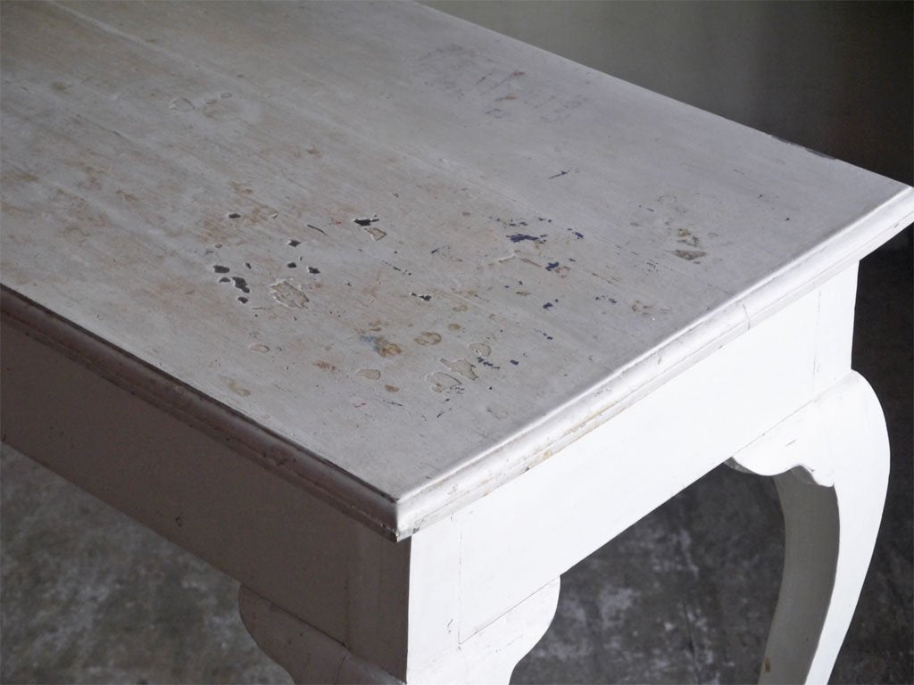 シンプルでいて上品なデザインのデスクにペイントを施し、経年によって生まれたやれた表情が魅力的な逸品。
