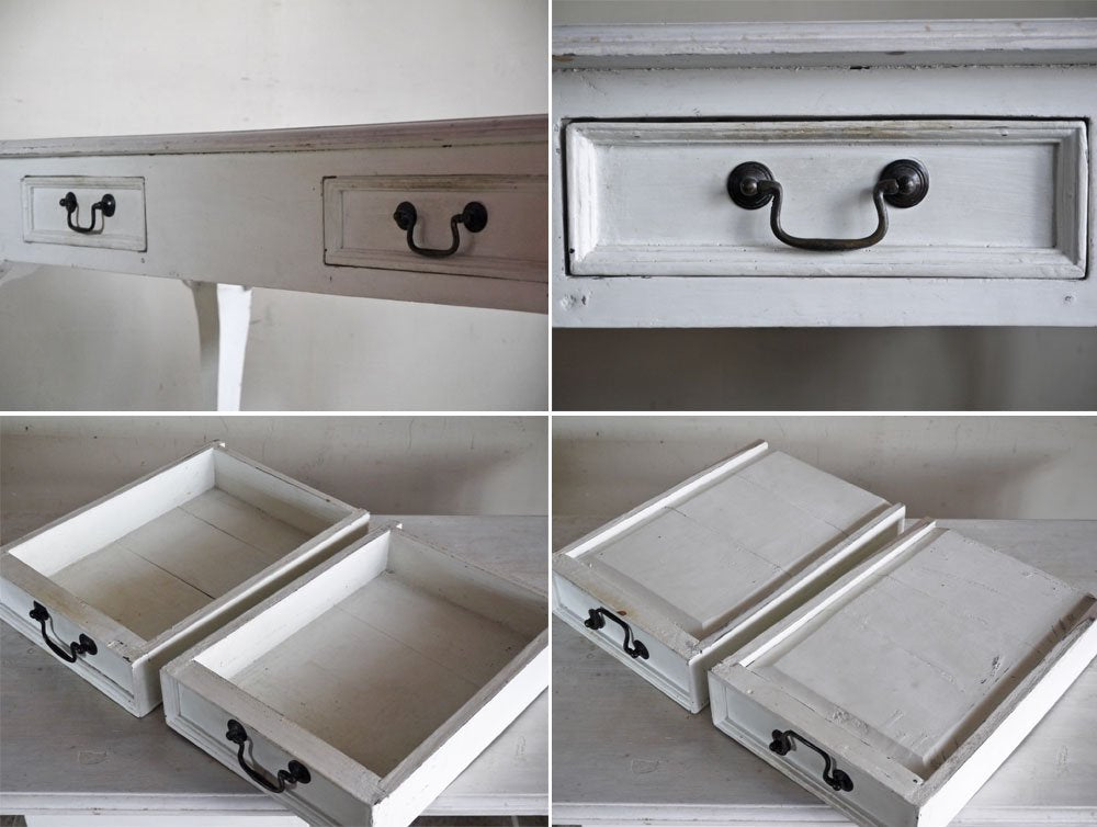 UKビンテージ UK Vintage ホワイトペインテッド デスク ワークテーブル 2ドロワー W120cm ~経年による研磨~