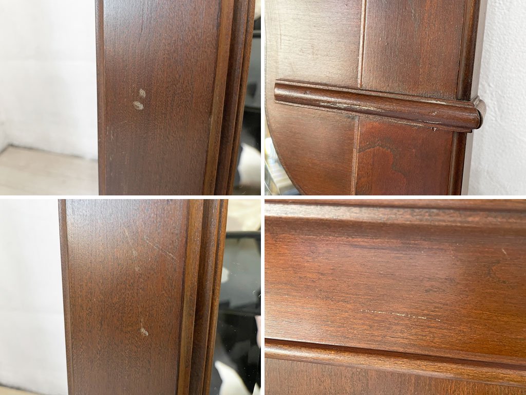 使用に伴い、木フレームには傷や擦れ、打痕やペイントロスが見受けられます。その他、鏡にクスミやサビと言った使用に問題となるようなダメージは無く、今後も永く実用頂けるコンディションを保っております。