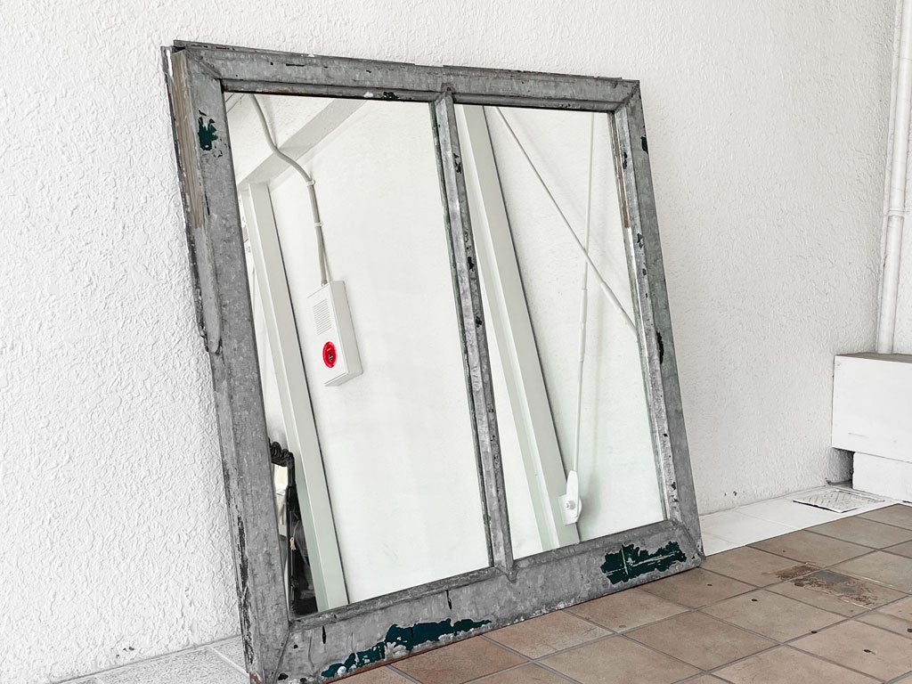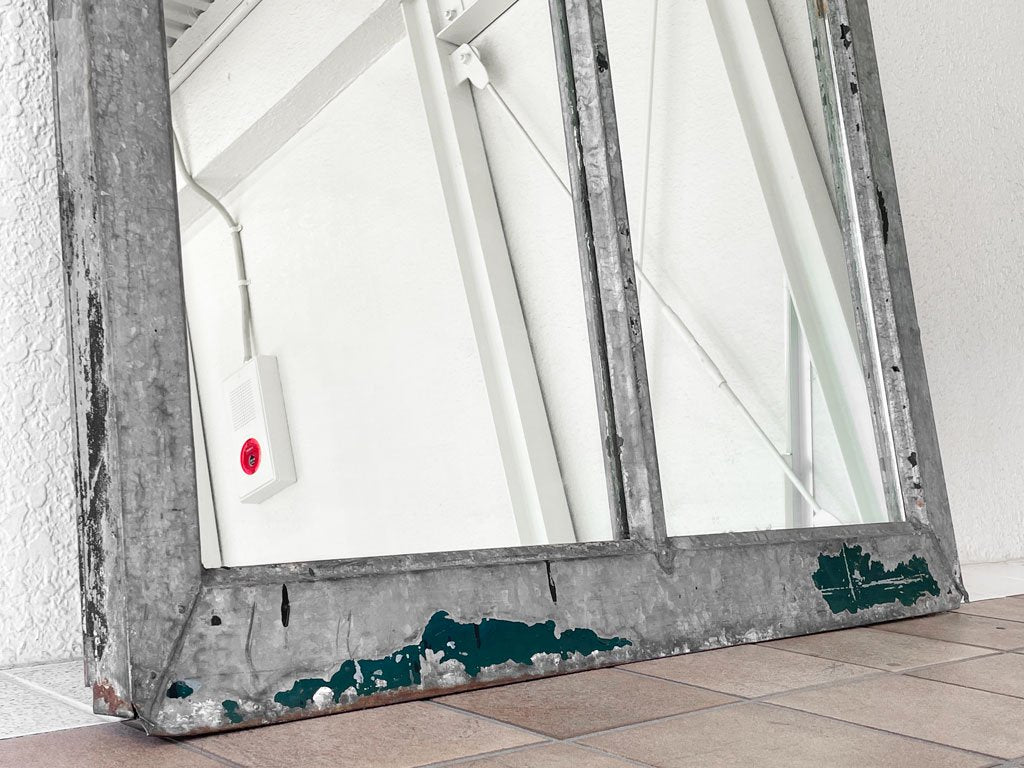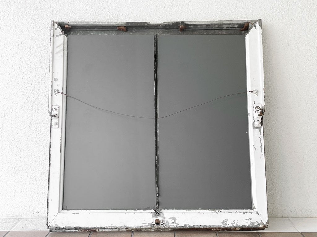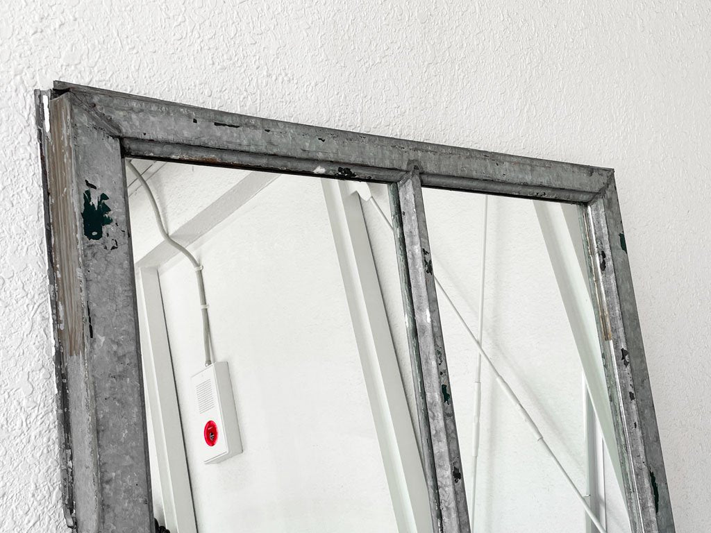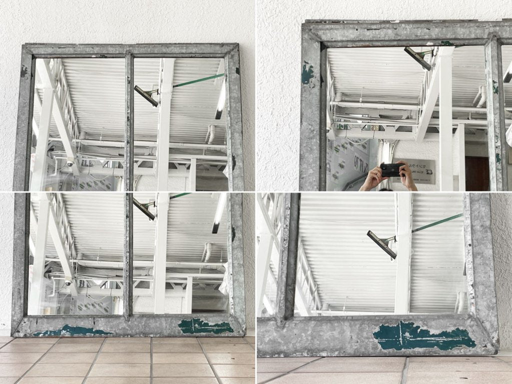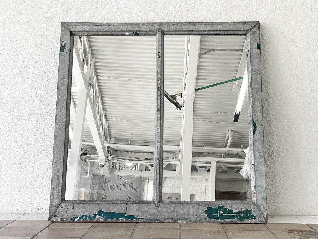 フランスビンテージ France Vintage ブリキ 窓枠型 壁掛けミラー 鏡 ブロカント シャビーシック 大型 W106.5×H105cm ◇