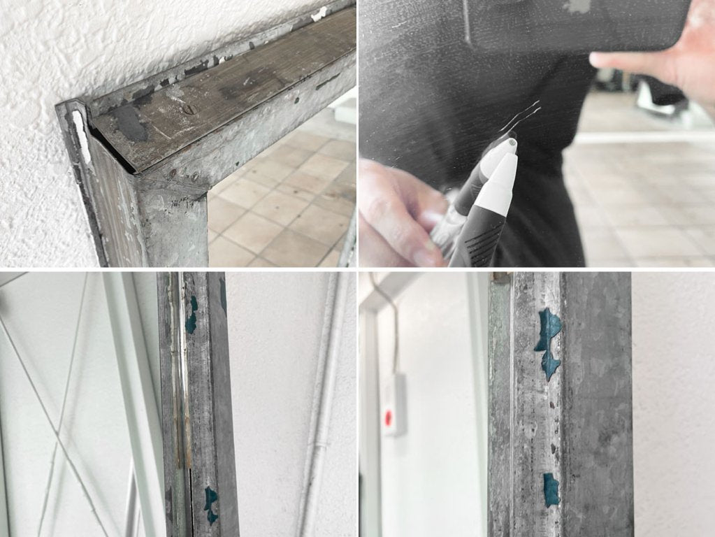 ダイナミックな経年感でありながら鏡に割れもなく、理想的な状態となっているこちらのミラー。