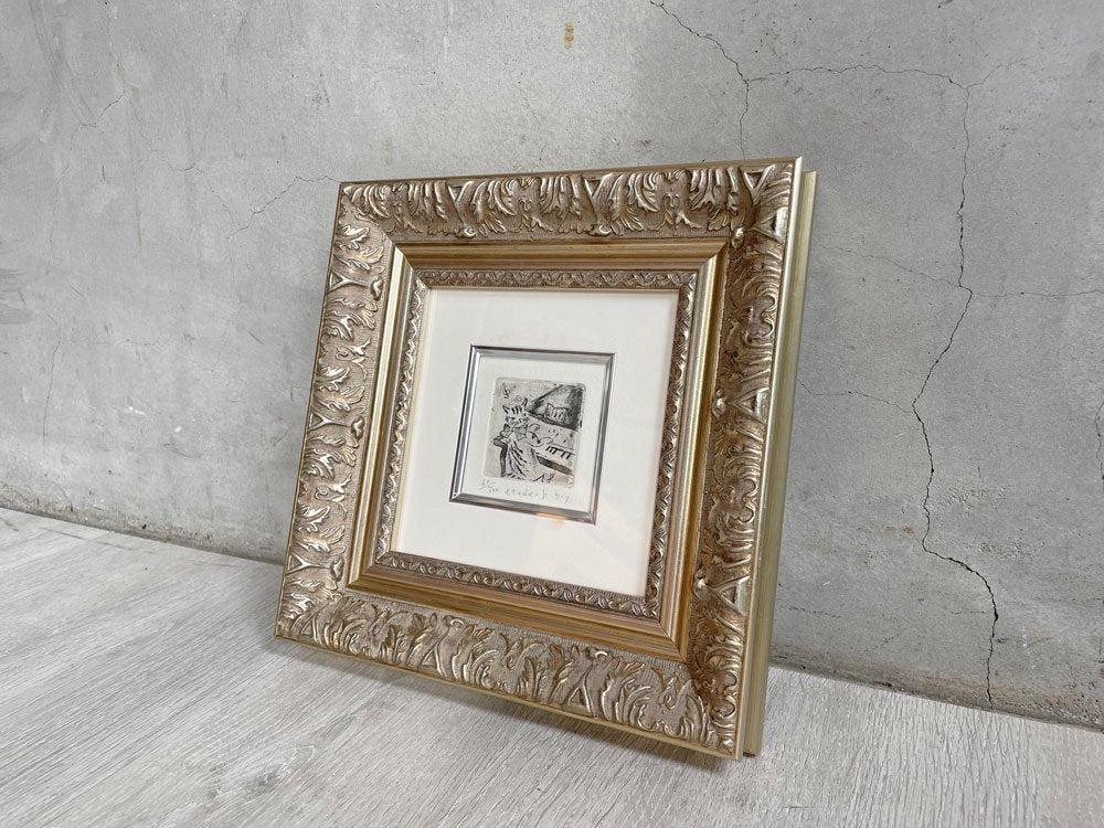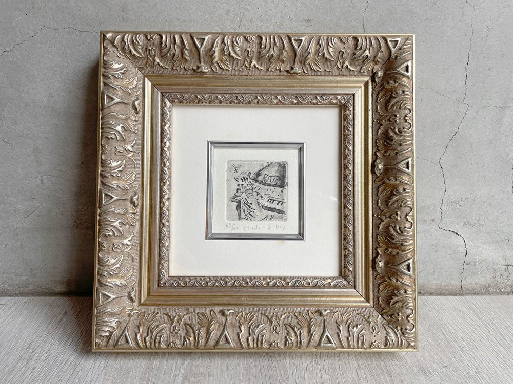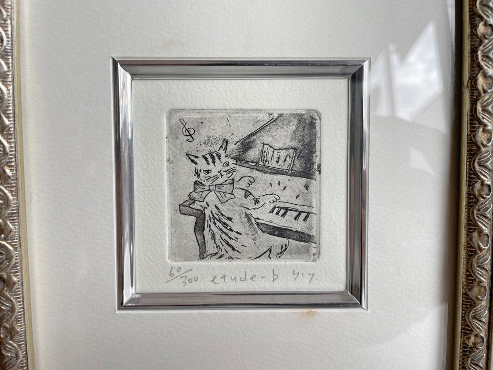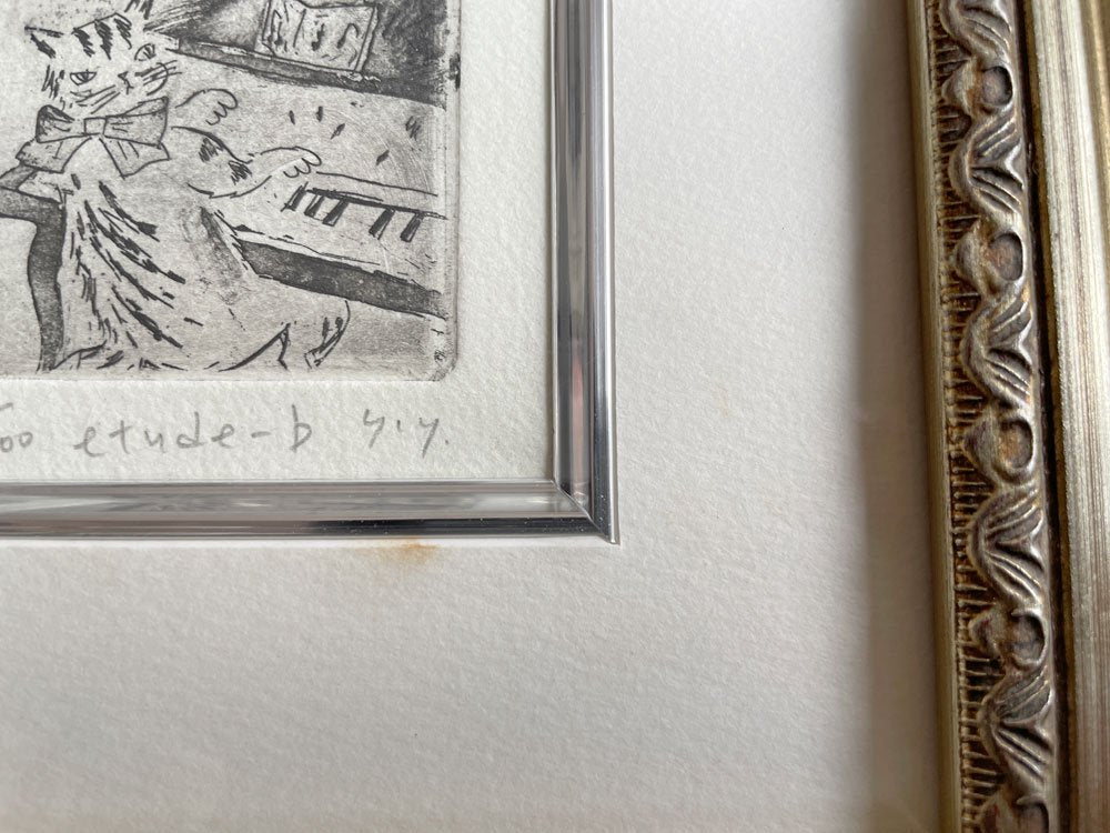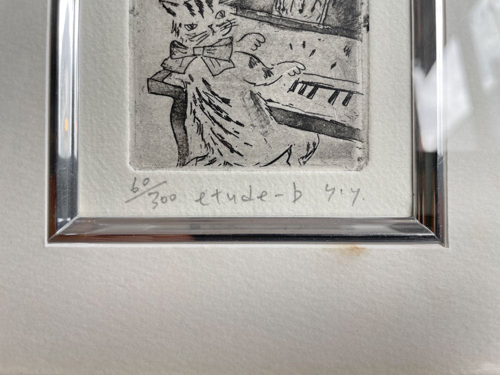 山岡康子 Yasuko Yamaoka エチュード 銅版画 額装 猫 直筆サイン入り ♪