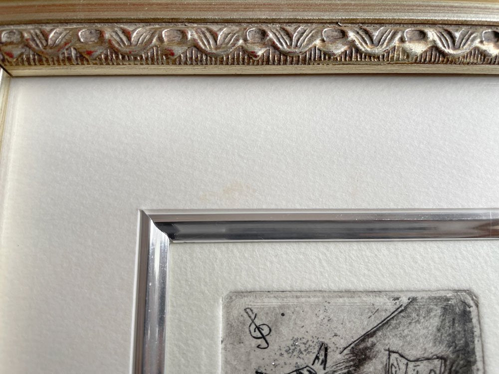 台紙に薄染みのほか、アクリルに微細な擦り傷が見られるものの、作品自体には美観を損なうようなダメージはございません。