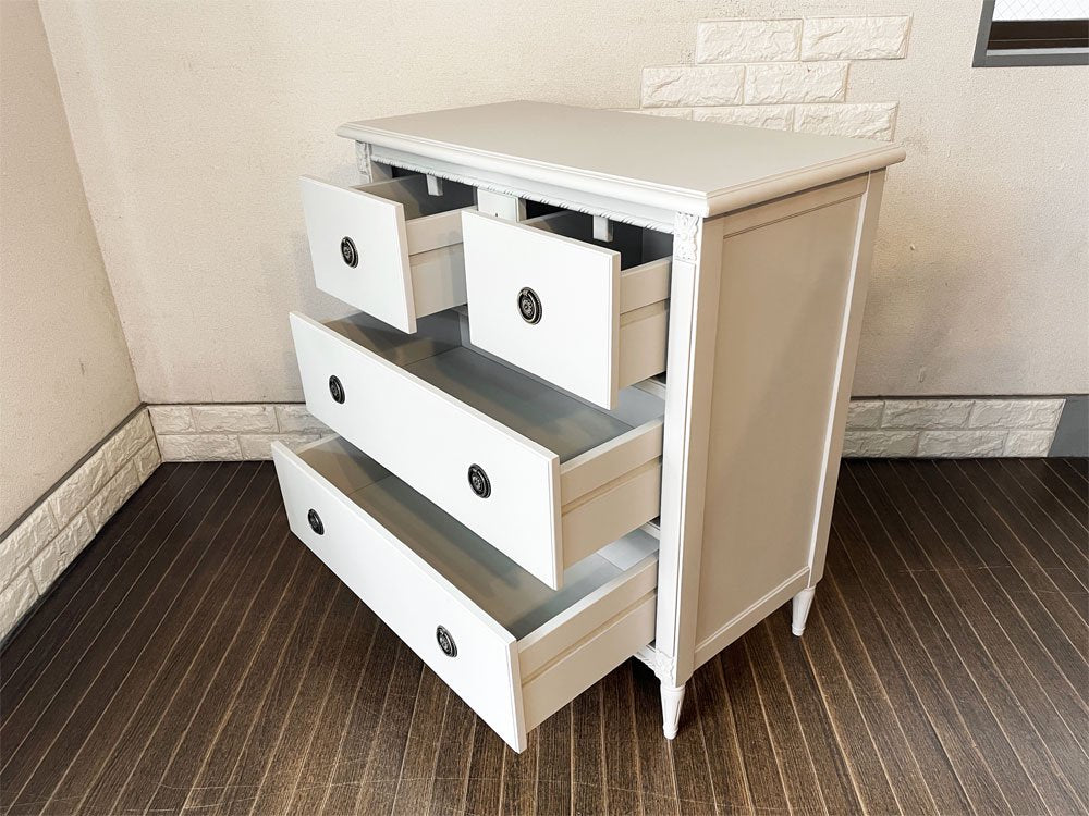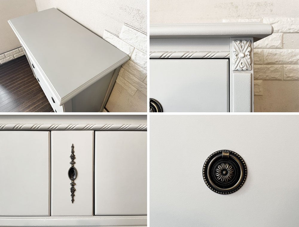 こちらは、薄いグレーのペイントが施された「ユジェニー チェスト」です。