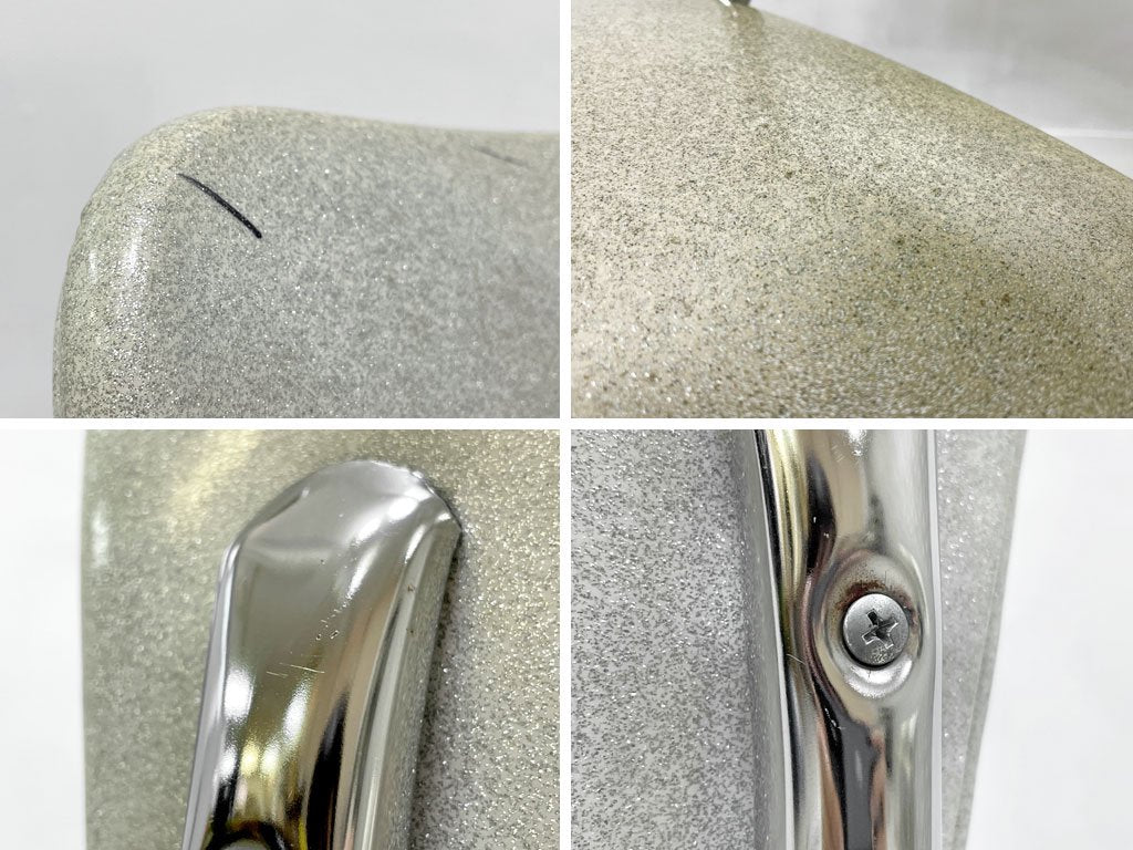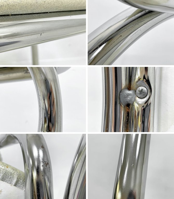 使用に伴う細かな擦れや傷、打痕、落としきれない汚れが全体に散見され、フレームには素材特有の錆やくすみ、シートには日焼けによる色合いの変化が生じております。
