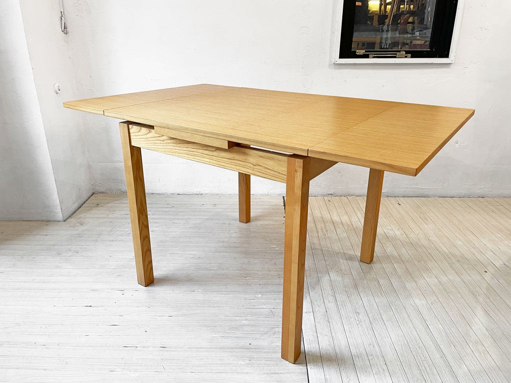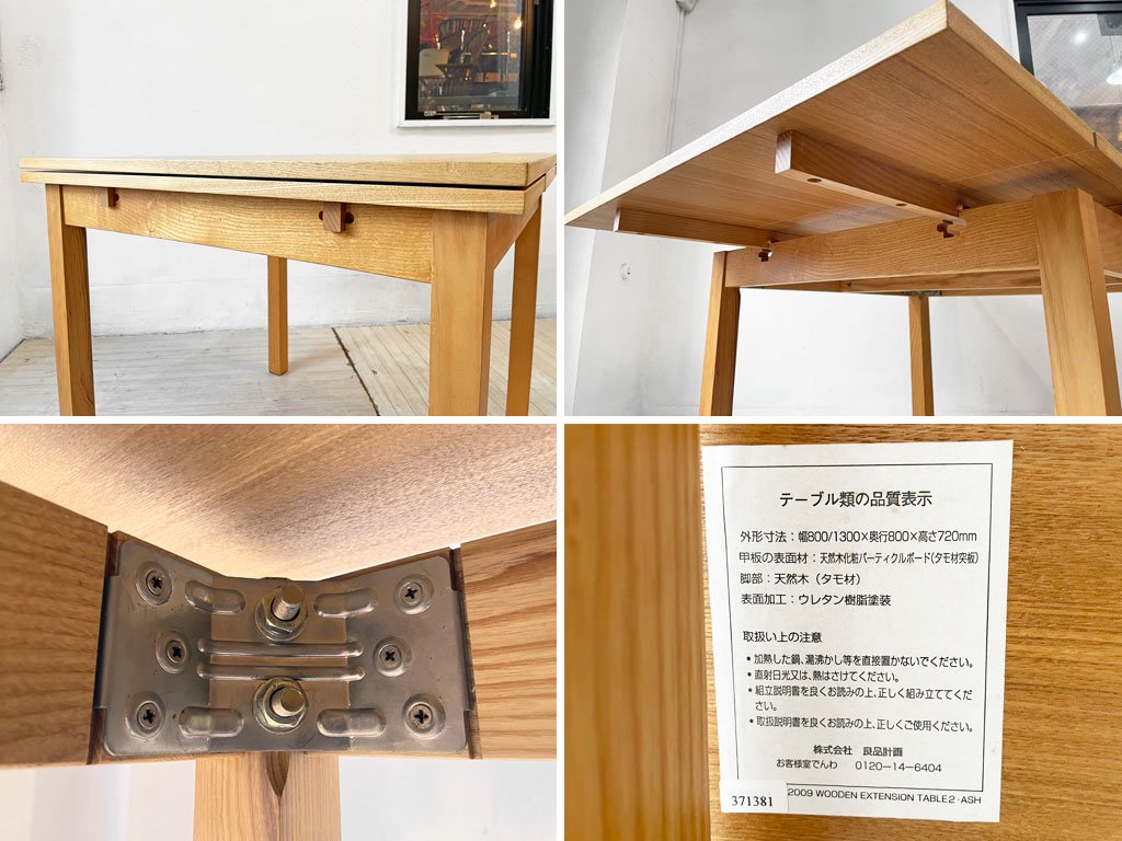 無印良品 MUJI エクステンション ダイニングテーブル タモ材 W80-130cm 伸長式 ナチュラル シンプルデザイン 廃番 ★