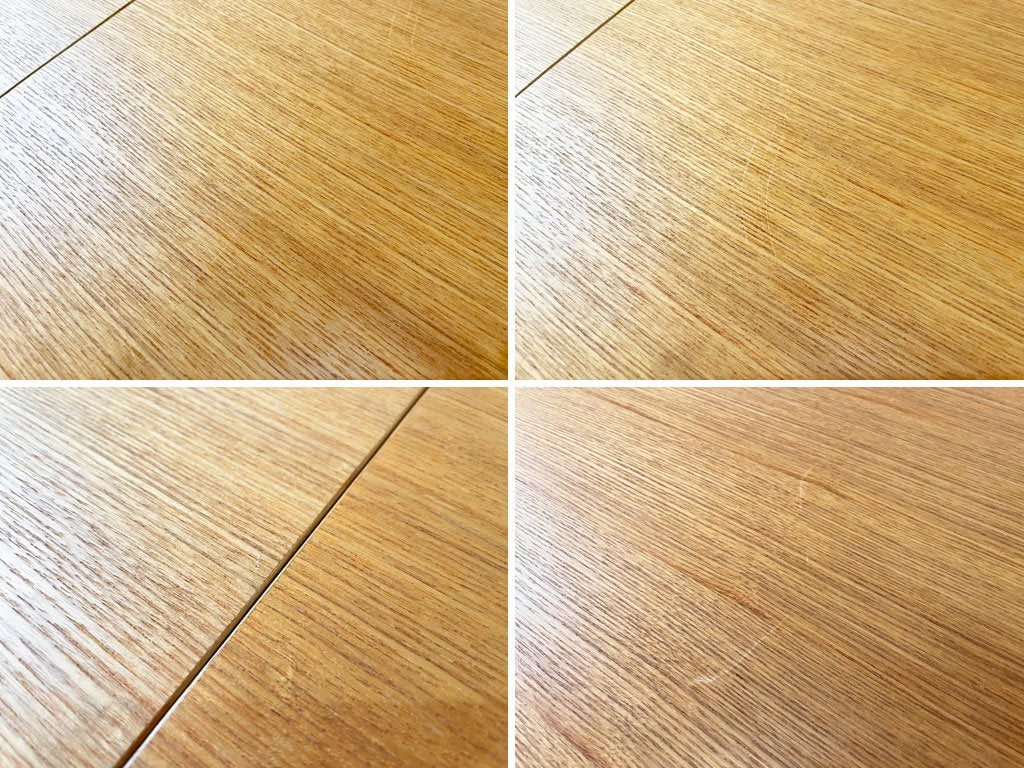 使用に伴う傷や擦れ、打痕やペイントロスなどがございます。また、天板の一部にヒビと浮きのある箇所がございますが、大きく美観を損なうようなダメージなども無く、ご使用に問題のある箇所などもございません。これからも安心してお使い頂けるコンディションを保っております。