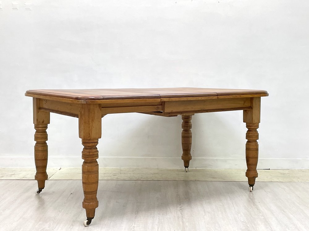UKビンテージ オールドパイン エクステンション ダイニングテーブル ハンドル伸長式 キャスター付き 151cm 英国アンティーク ●