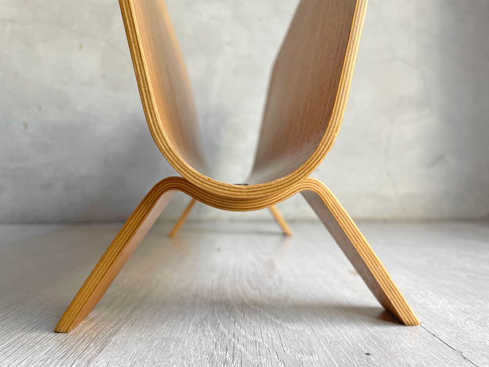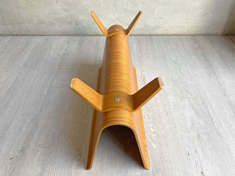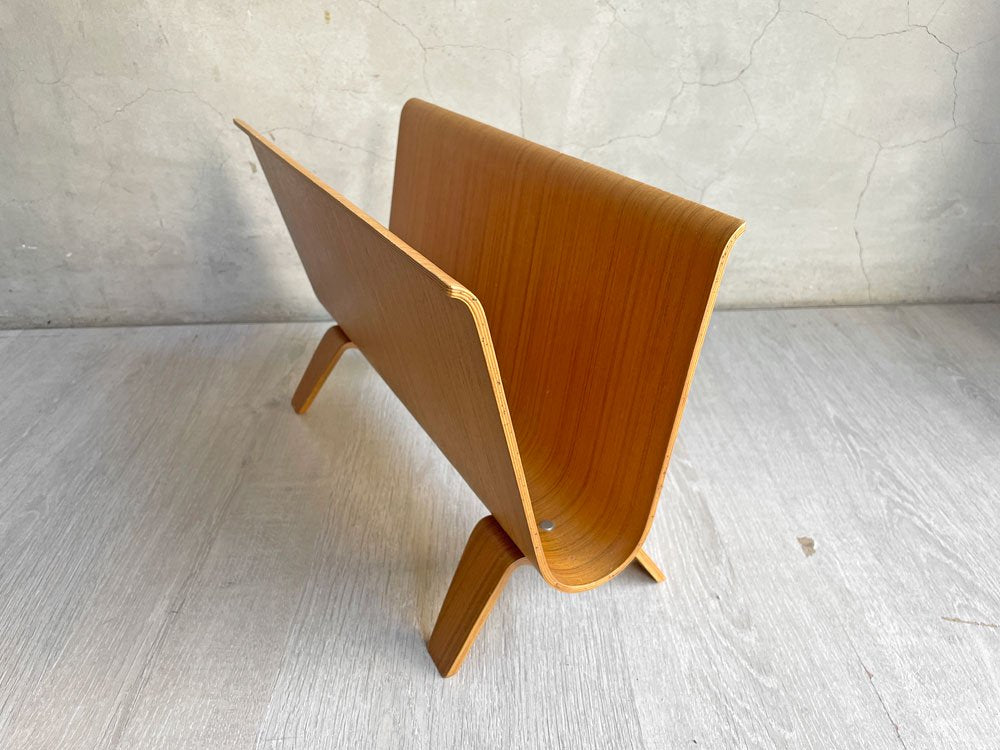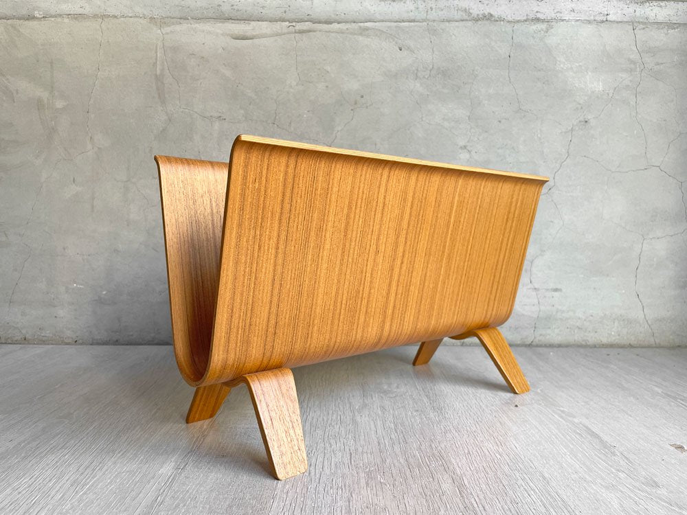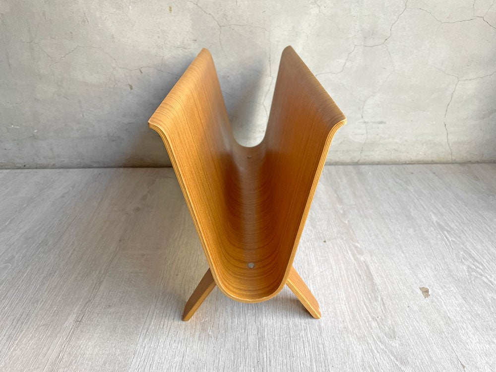 プライウッドが生み出す美しい曲線と木の層が特徴的なチークカラーのマガジンラック。