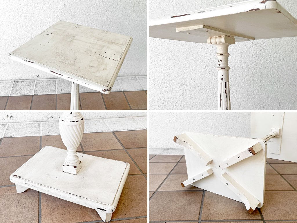 フランスビンテージ France Vintage ペインテッド サイドテーブル ホワイト シャビーシック ヨーロピアンアンティーク 西洋家具 カントリースタイル ◇
