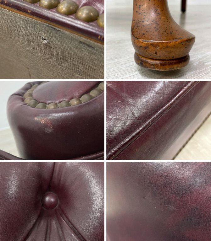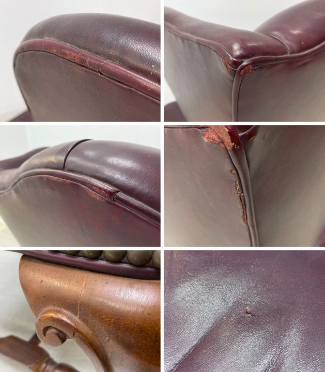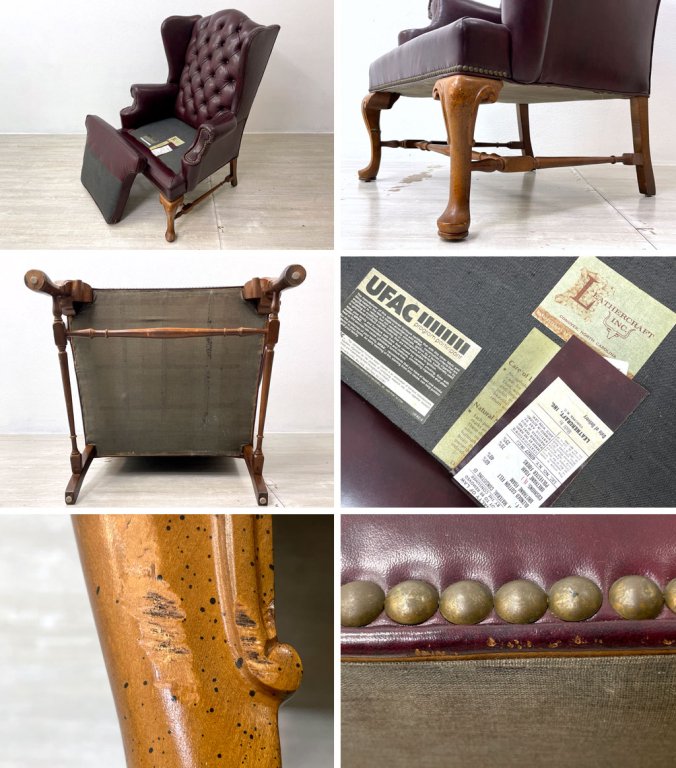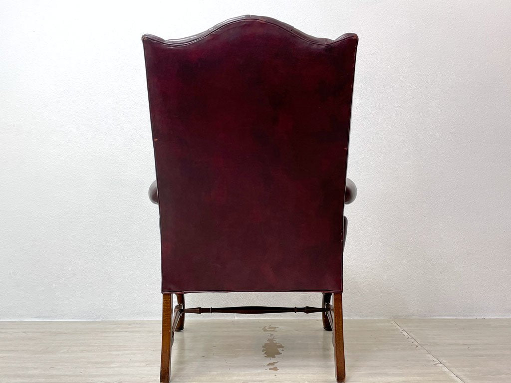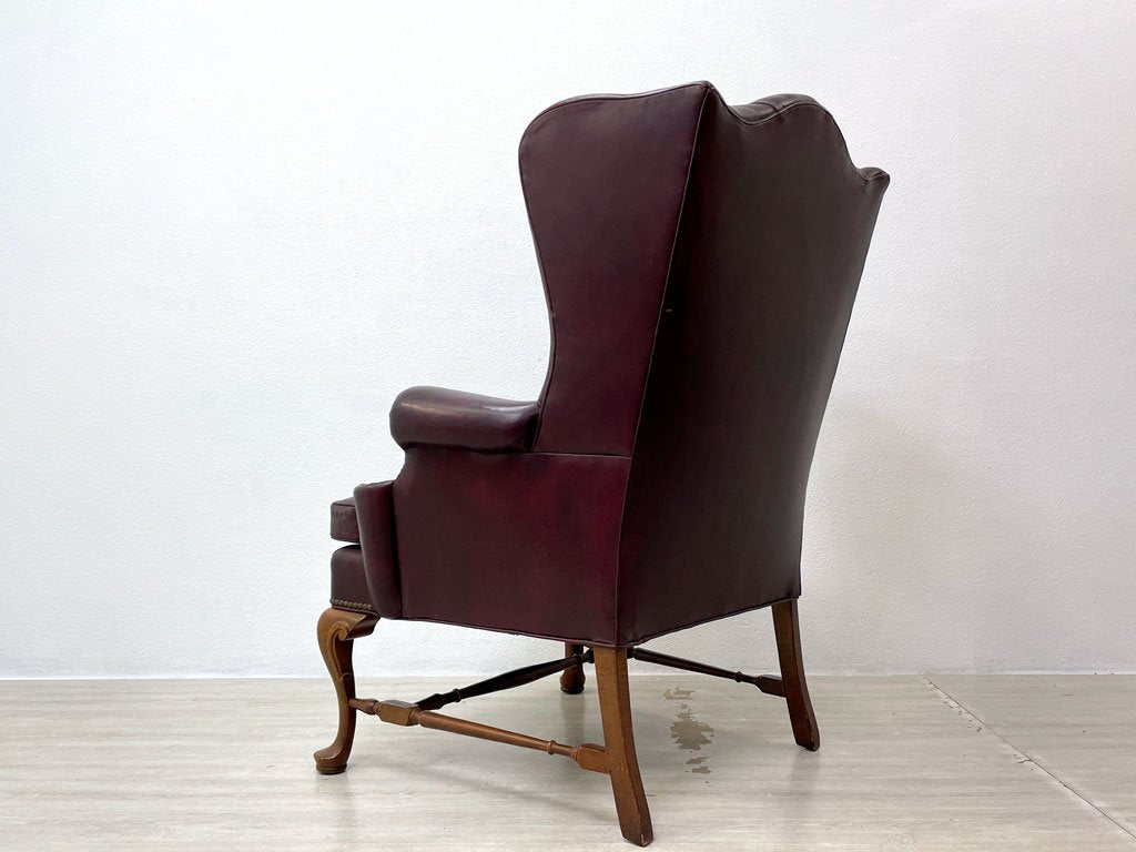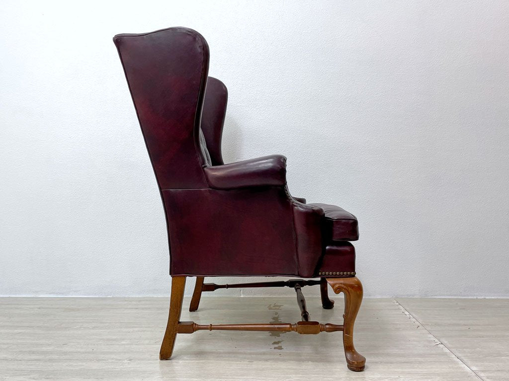 レザークラフト Leathercraft Inc. ウイングバック ボタンタフトレザー 本革 単鋲 ワインカラー クイーンアンスタイル USビンテージ 1Pソファ ●