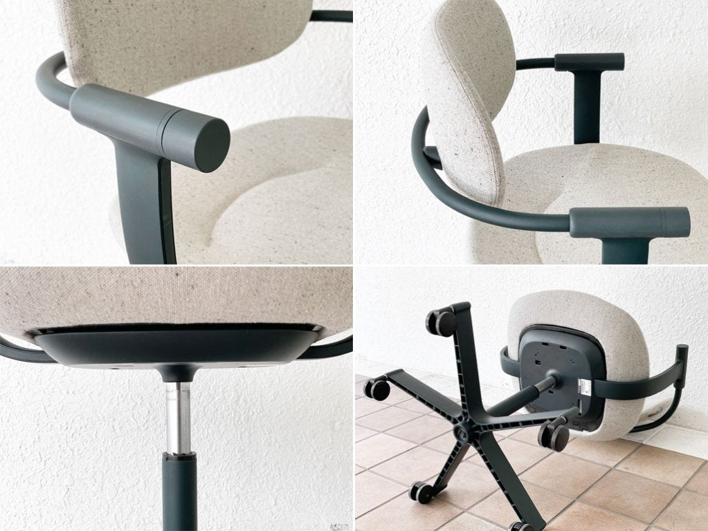 アームの先をひねる事で昇降が可能となり、その直感的な操作性も大きな魅力。背もたれのロッキング、座面のスライド機能も備え、日々のデスクワークを快適に演出します。