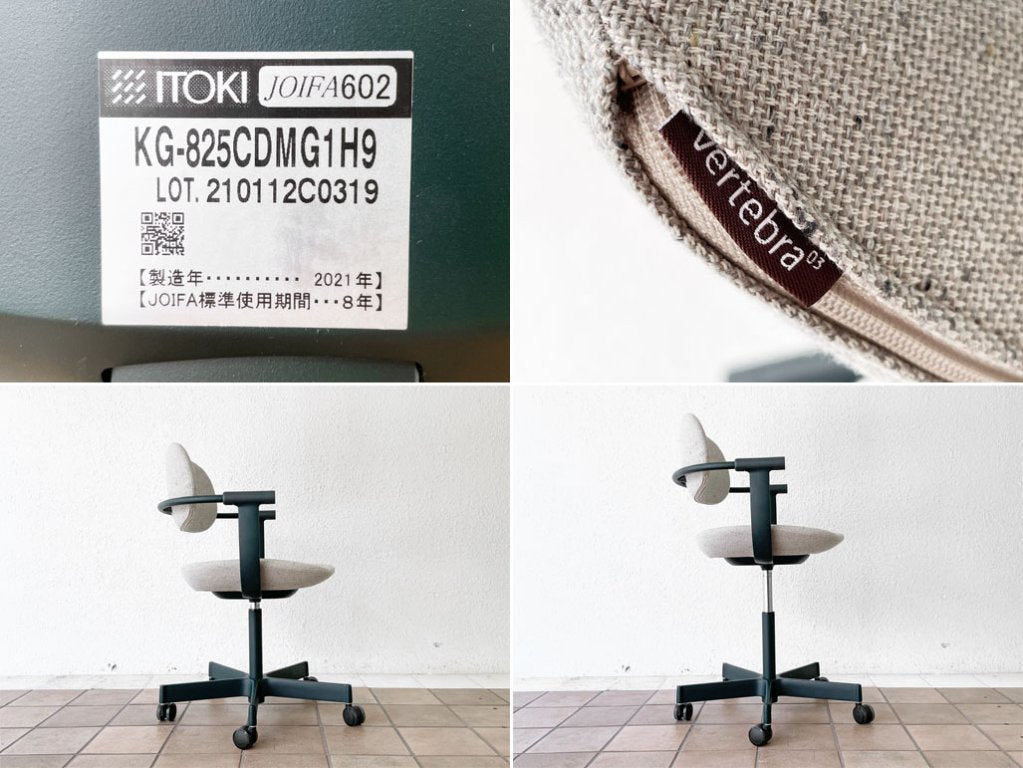 イトーキ ITOKI バーテブラゼロサン vertebra03 デスクチェア 5本脚 キャスター ダークグリーン ファブリック エクリュベージュ 柴田文江 美品 ~ 仕事と暮らしを繋ぐイス ~