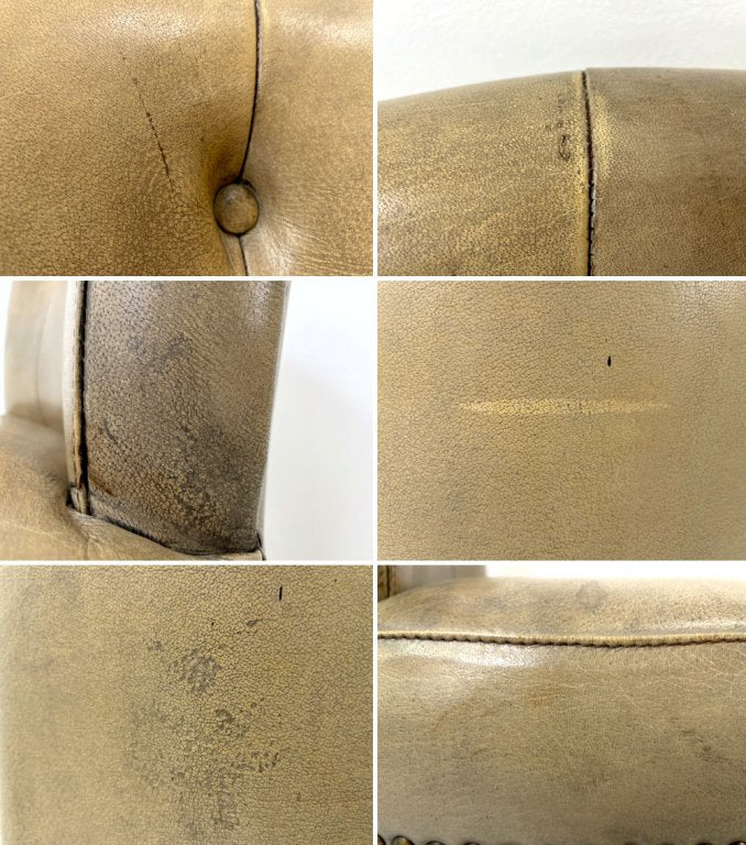 使用に伴う擦れ、傷、打痕が散見されます。レザー部分には取りきれない汚れや傷ががございますが、エイジングによる味わいを損ねることのない程度のダメージとなっております。