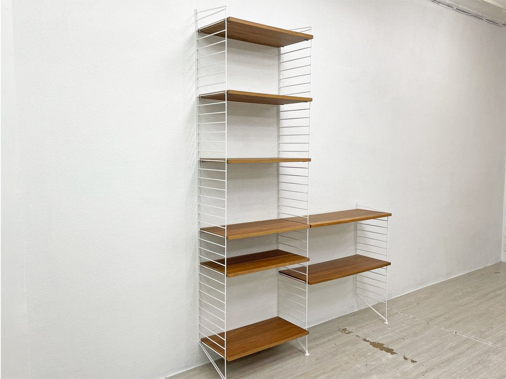 ストリング String システムベーシック system BASIC ウォールシェルフ ラック 2列 ウォールナット材 棚板×ホワイト フロアパネル 合計定価約117,000円 ●