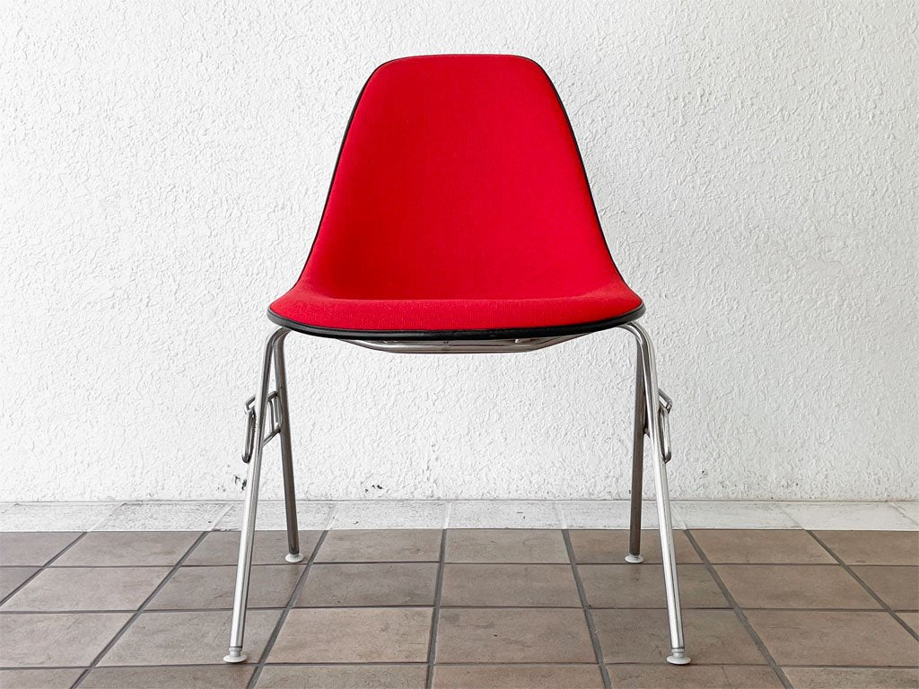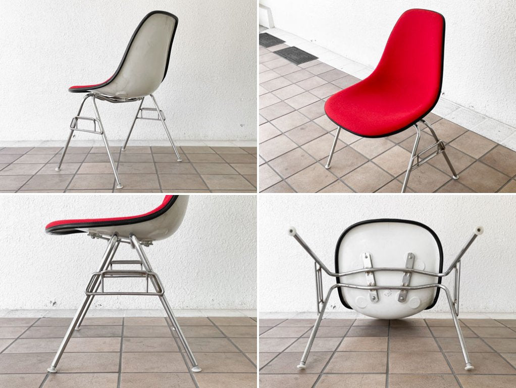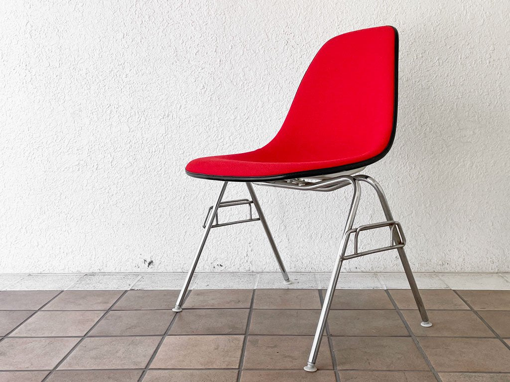 ハーマンミラー Herman Miller M.F.S製 サイドシェルチェア アプホルスター ホップサック Hopsak レッド スタッキングベース イームズ 現状品 ◇