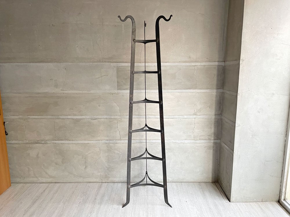 ビンテージスタイル クックウェアスタンド ポットスタンド 鍋置き棚 5段 アイアン 鋳物 インダストリアル ♪