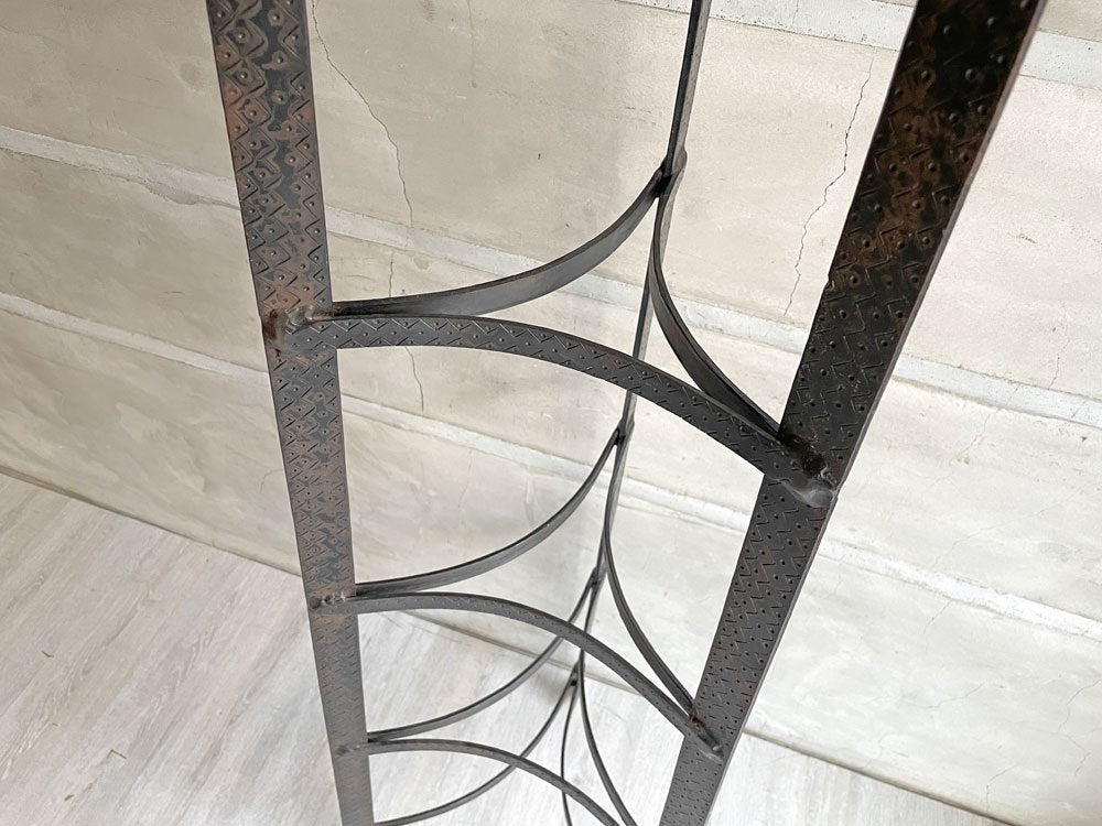 無骨なアイアンの質感ながら、所々曲線的なフォルムを取り入れる事でクラシカルな要素が加えられております。