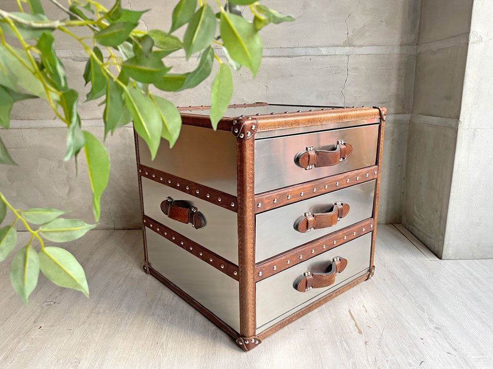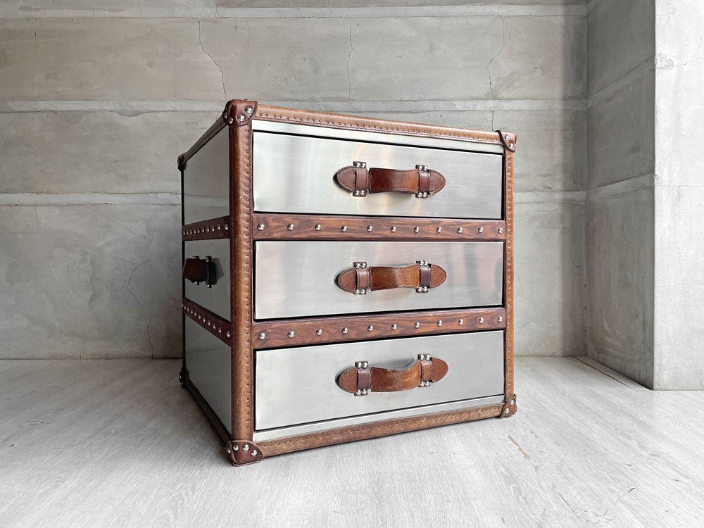 レストレーション ハードウェア Restoration Hardware メイファ スチーマー トランク MAYFAIR STEAMER TRUNK 3ドロワー サイドテーブル ~空間に渋さを~