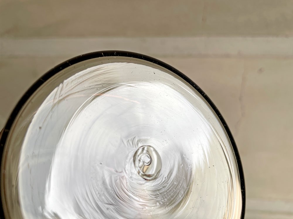 ”手吹きの方法によって作られるガラス作品はうっすらと色づいており、ガラス素材自体が線となって見える「みゃくり」と呼ばれるものや、ゆらゆらとした「気泡」など、手作りの風合いが感じられます。
