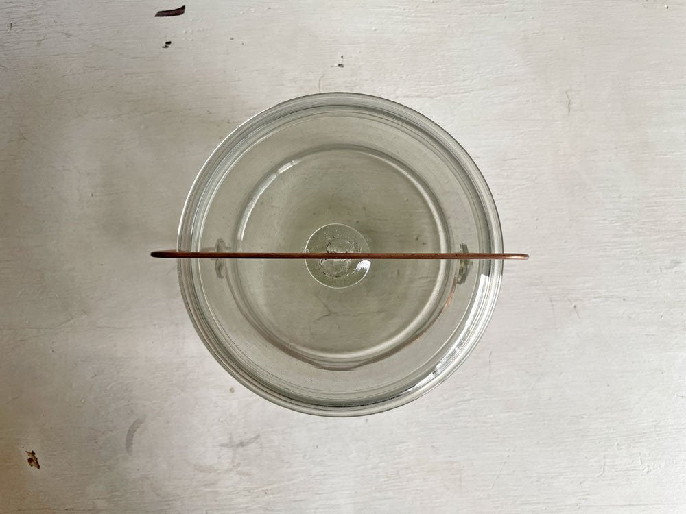 封をするワイヤーは銅で覆われており、経年変化により酸化し黒く錆びた時に作品として完成するそう。